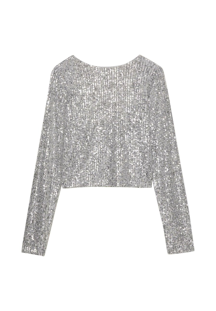 Блуза PULL&BEAR SEQUINNED LONG SLEEVE, Silver Coloured/Silver-Coloured