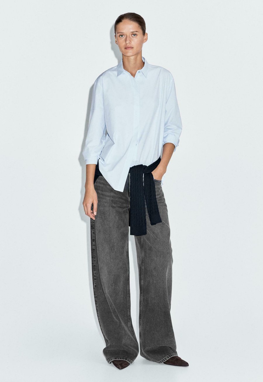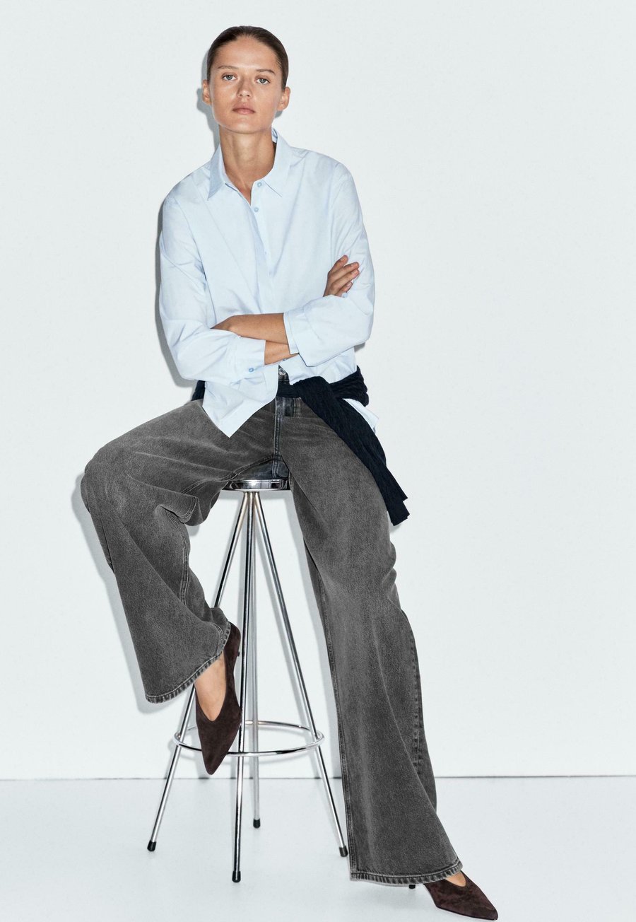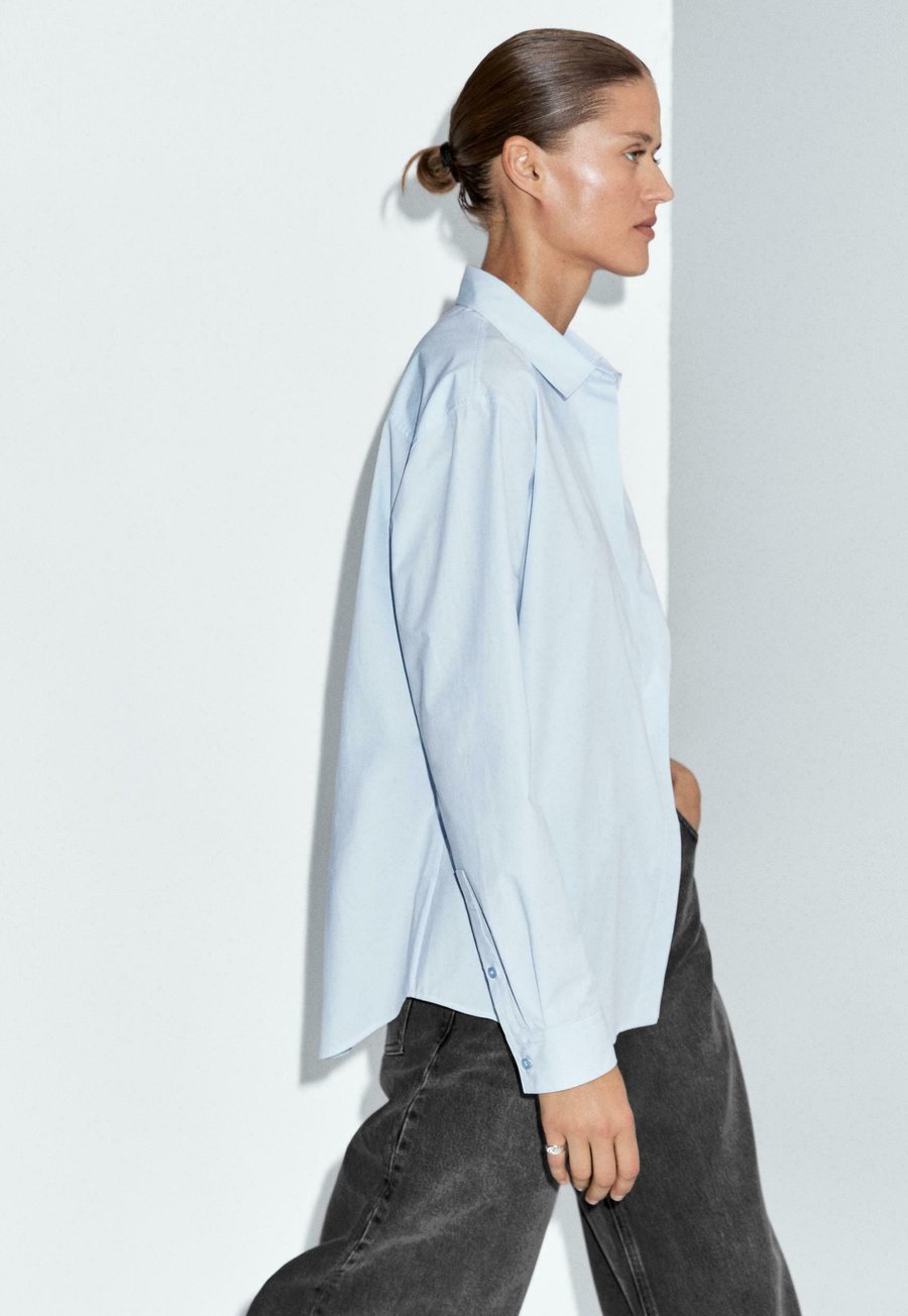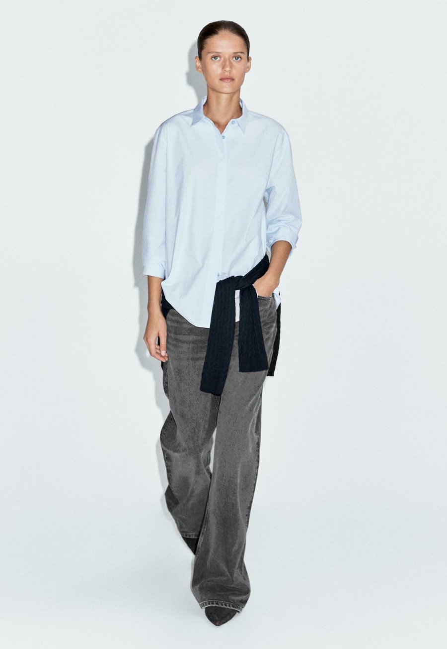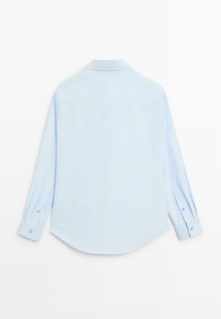 Рубашка из 100% хлопка. Рубашечный воротник. Длинные рукава. Застежка на пуговицы спереди, скрытая планкой. Воротник: Рубашечный воротникМатериал и уход