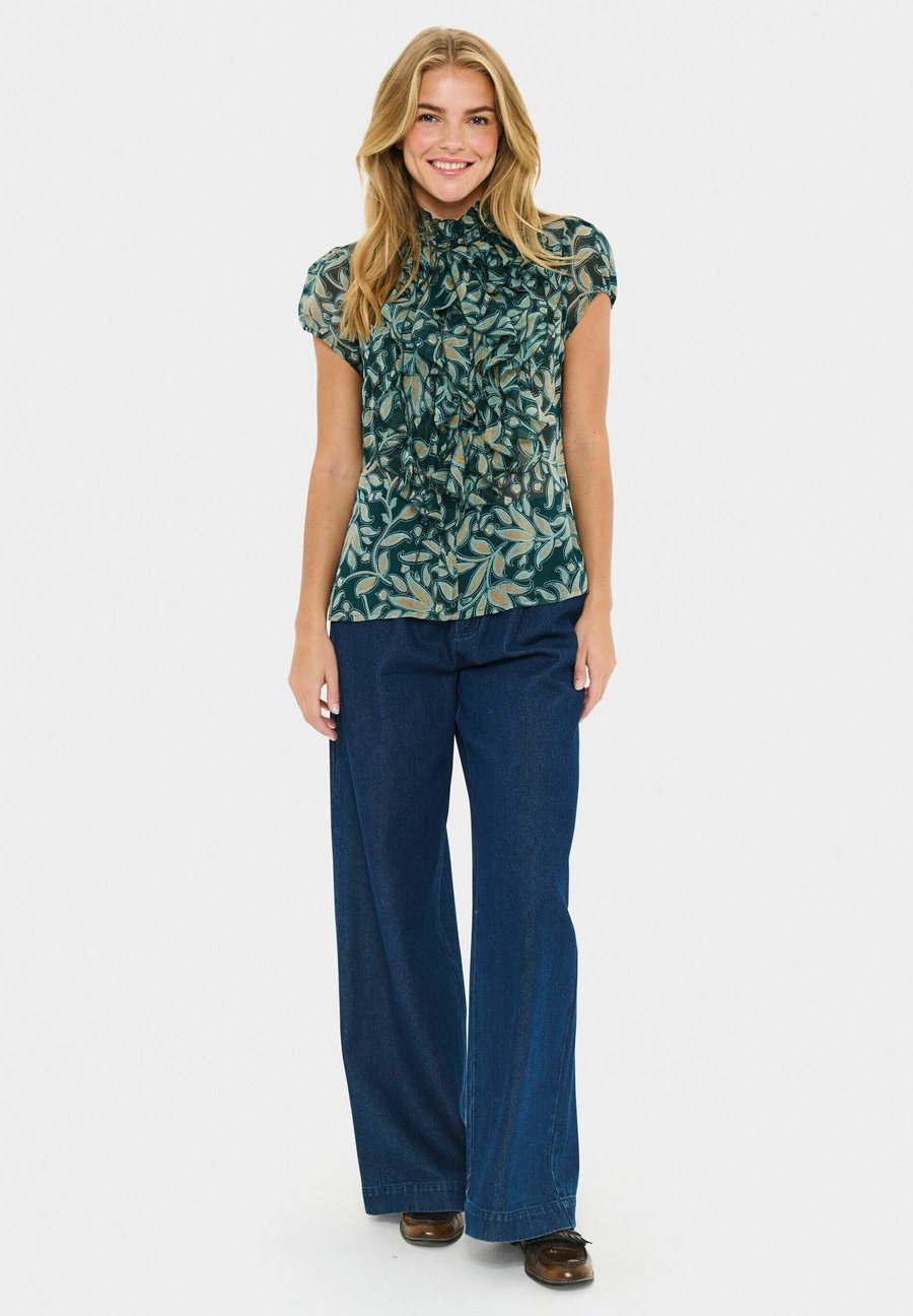 Блуза Saint Tropez LILJASZ CRINKLE SS SHIRT, Pine Autumn Floral/Multi-Coloured