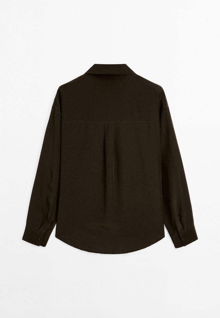 Воротник рубашки. Длинные рукава с манжетами на пуговицах. Легкая техническая ткань. Свободная рубашка. Застежка на пуговицы спереди. Воротник: Рубашечный воротникМатериал и уход