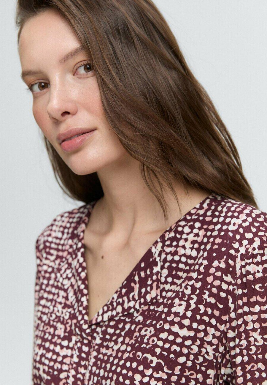 Вискоза, блузка с рукавами 3/4 и V-образным вырезом. С эластичным поясом по низу и небольшими сборками на плечах и спине. Вырез: Низкий V-образный вырезМатериал и уход