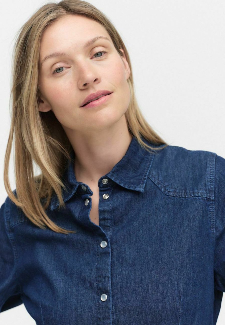 Рубашка Theresa от Dobber - приталенная джинсовая рубашка с подчеркнутой талией для создания привлекательного силуэта. Имеет классический воротник, застежку на пуговицы спереди и широкие манжеты. Идеально сочетается с джинсами или юбками для создания повседневного, но элегантного образа. Воротник: Рубашечный воротникМатериал и уход