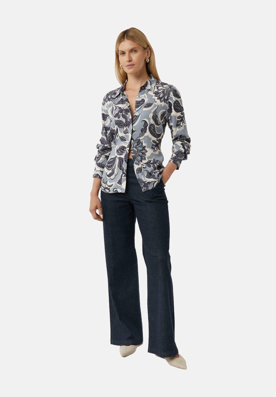 Блуза comma MIT ALL-OVER-PRINT UND VERDECKTER KNOPFLEISTE, Navy/Multi-Coloured