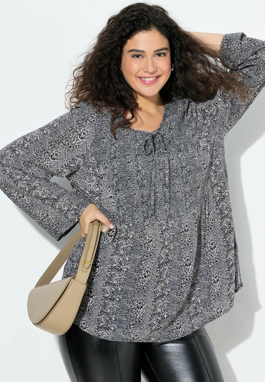 Блуза Ulla Popken LONG SLEEVE, Dark Cement/Black