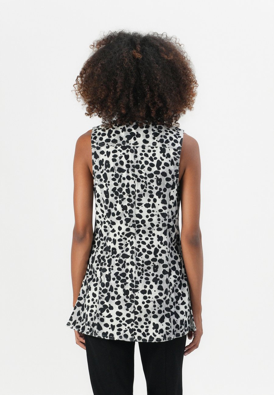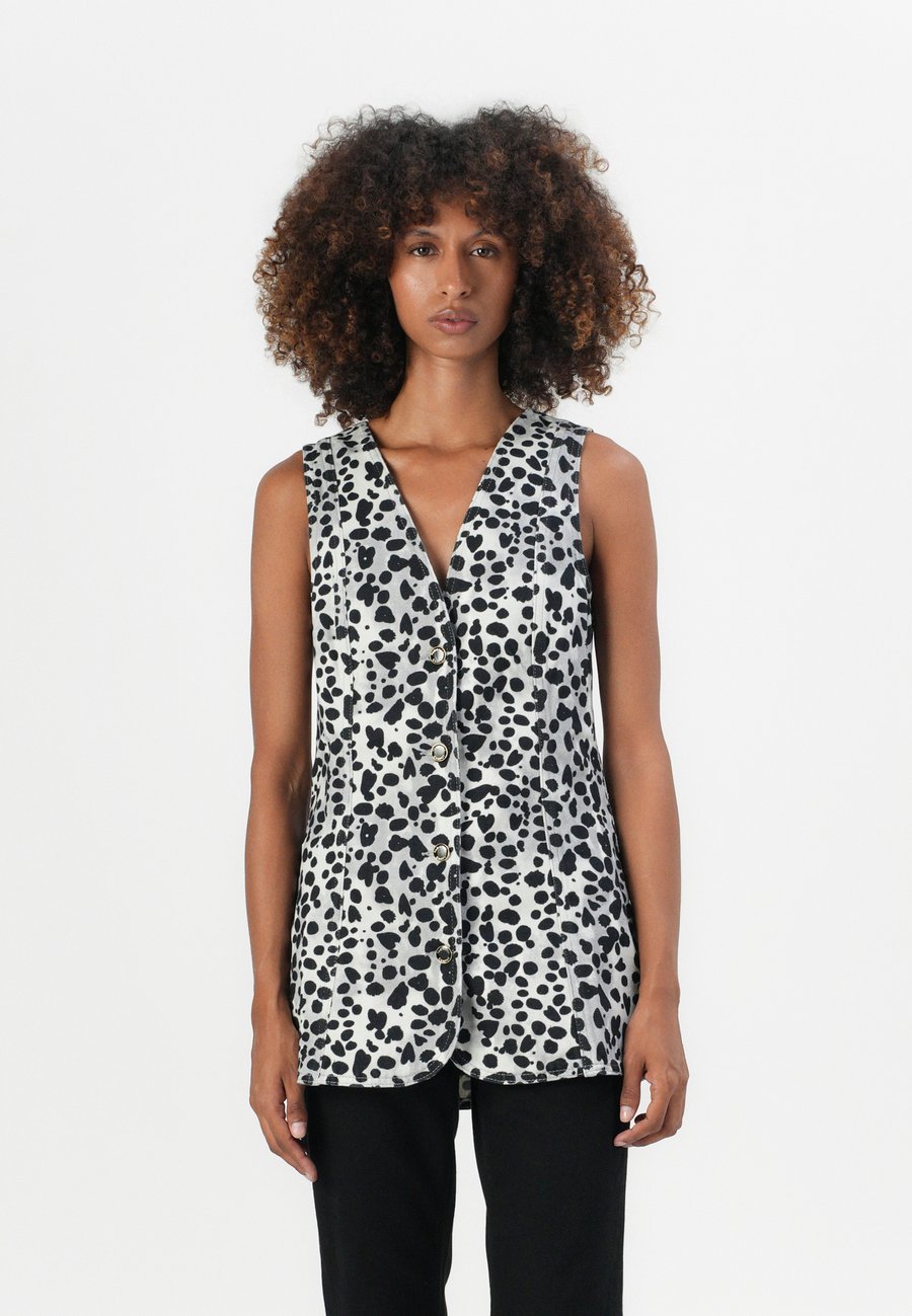 Этот жилет из джинсовой ткани с черно-белым принтом изготовлен из 100% хлопка и имеет застежку на пуговицах по всей длине. Сочетайте его с любимыми джинсами и кроссовками для расслабленного и непринужденного летнего образа. Вырез: Низкий V-образный вырезМатериал и уход