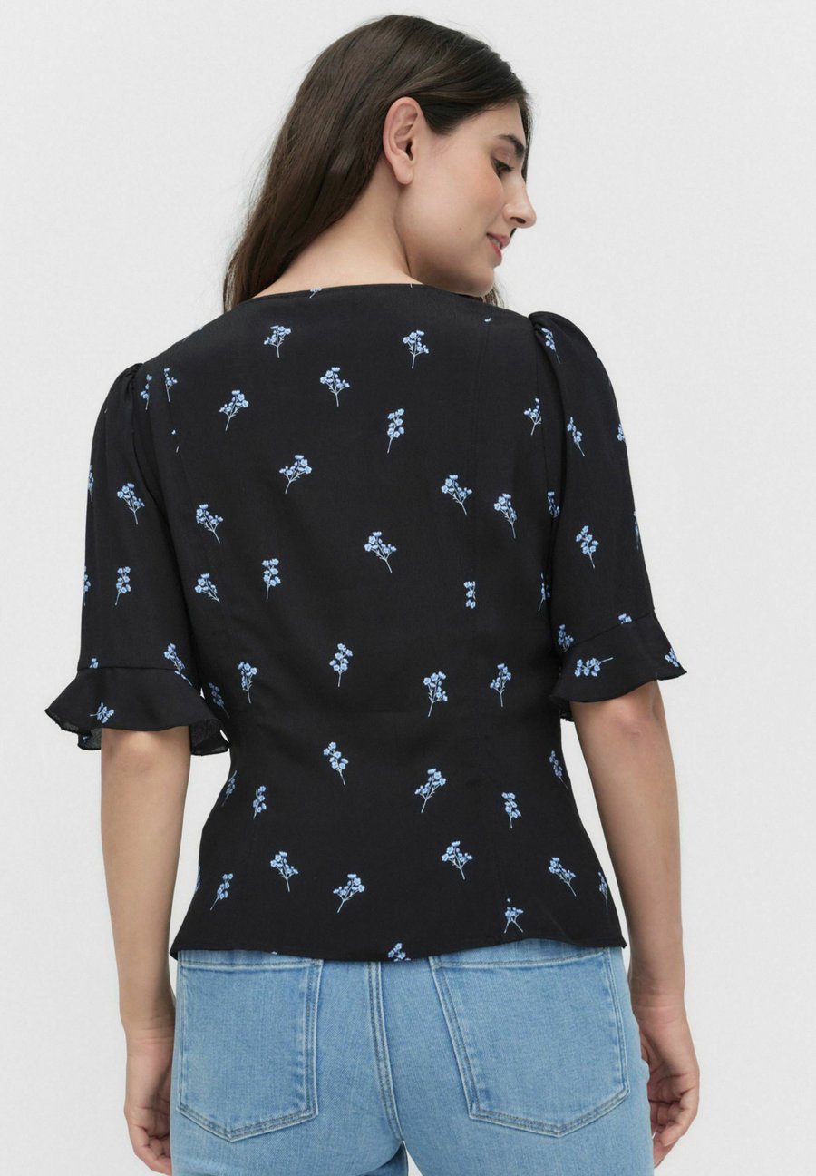 Блузка Delia от Dobber - это блузка с цветочным принтом и облегающим кроем. Модель имеет V-образный вырез, застежку на пуговицы спереди и короткие рукава с оборками. Женственная вещь, идеально подходящая как для повседневной носки, так и для особых случаев. Вырез: Низкий V-образный вырезМатериал и уход