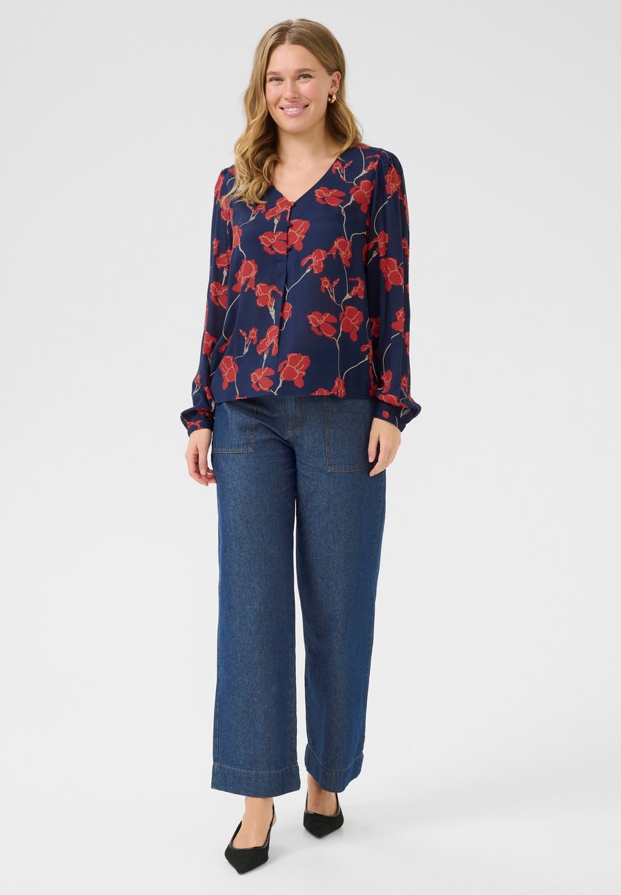 Блуза Kaffe KACARLA, Midnight Red Flowers/Dark Blue