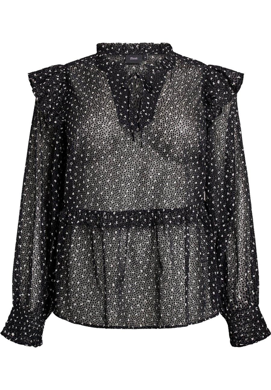 Блуза Zizzi MIT RÜSCHENDETAILS UND KLEINEN PUNKTEN, Black Dot/Black
