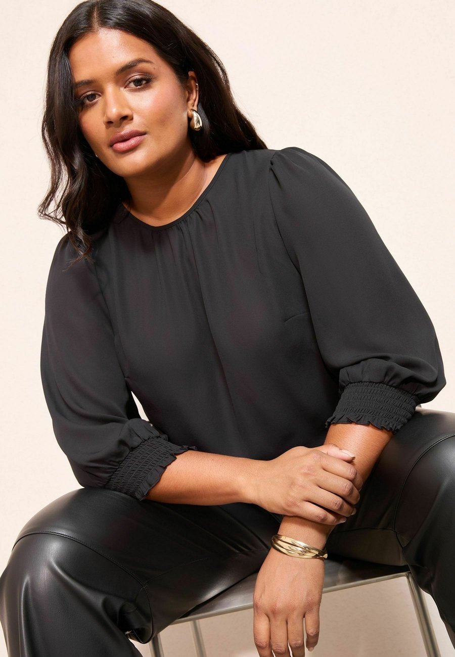 Блуза Friends Like These PLUS SIZE FIT 3/4 SLEEVE SHIRRED CUFF, Black