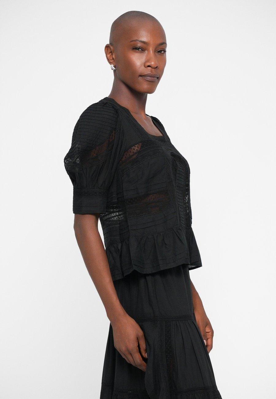 Перламутровые пуговицы, прозрачные вставки. Вырез горловины: Квадратный.Материал и уход