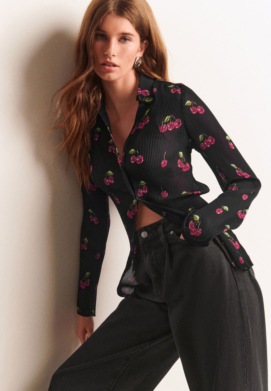 Блуза Next LONG SLEEVE REGULAR FIT, Black Cherry Print/Black