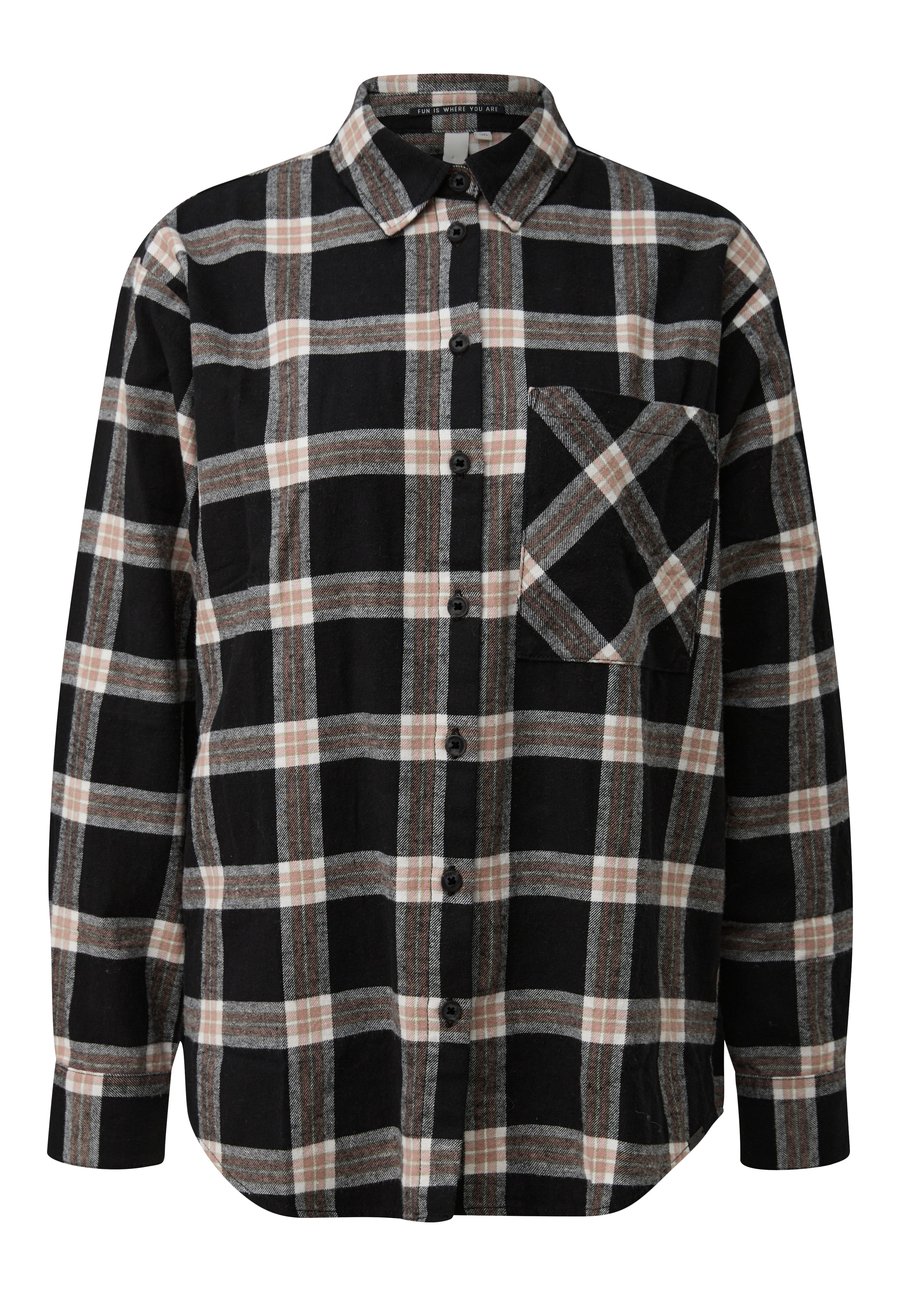 Блуза QS MIT KAROMUSTER, Schwarz/Black