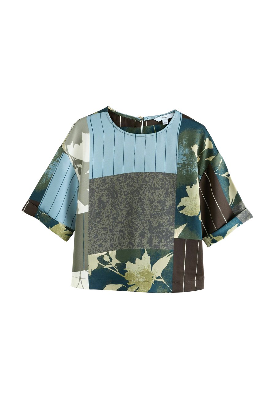 Блуза Next REGULAR FIT SHORT SLEEVE BOXY , Sage Abstract Floral Print/Green