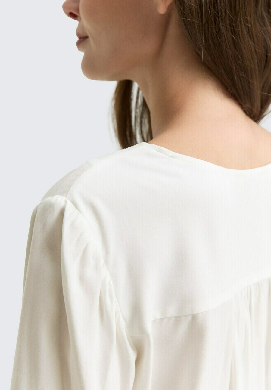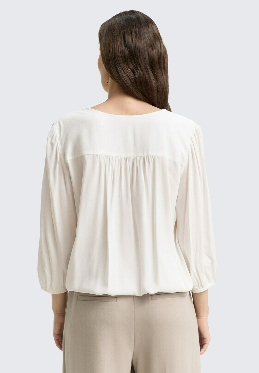 Вискоза, блузка с рукавами 3/4 и V-образным вырезом. С эластичным поясом по низу и небольшими сборками на плечах и спине. Вырез: V-образный. Застежка: Пуговица. Узор: Однотонный. Детали: Эластичный пояс. Материал и уход: 100% вискоза. Ткань: Сатин. Инструкции по уходу: Цвет может линять - стирать отдельно. Размер и посадка: Рост модели: 174 см, размер 36. Посадка: Обычная. Форма: Прямая. Длина: Стандартная. Длина рукава: 3/4. Длина рукава: 49 см (размер 36). Ширина спинки: 40 см (размер 36). 36)Доставка товаров осуществляется курьером или на пункт выдачи заказов.
