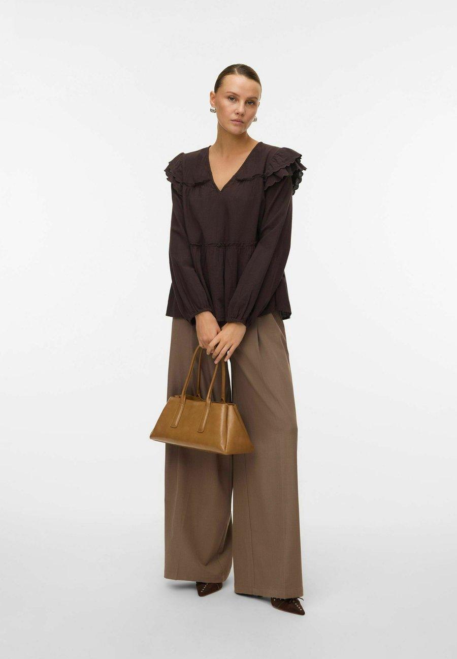 Базовые вещи неизбежно должны быть практически в каждом гардеробе. Наши базовые топы помогают создать цельный образ, и этот топ не исключение. Наденьте его с курткой-рубашкой, свободными джинсами-мом и массивными ботинками, и вы получите расслабленный и стильный повседневный образ. - Тип изделия: Топ - Воротник: V-образный вырез - Рукав: Длинный рукав - Рукава: Широкие рукава - Дополнительные детали: Кружевная отделка - Посадка: Обычная Вырез: Низкий V-образный вырезМатериал и уход