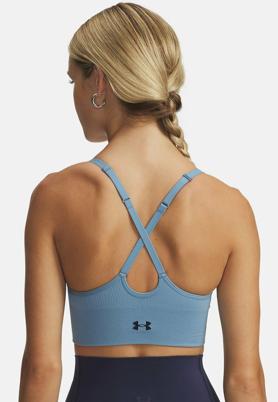 Этот бюстгальтер обеспечивает необходимую поддержку для занятий с низкой интенсивностью. Этот бюстгальтер имеет удлиненный крой, бесшовную посадку и регулируемые бретели для полного комфорта.О товареБюстгальтер без косточекСпорт: Тренировки и фитнесМатериал и уход