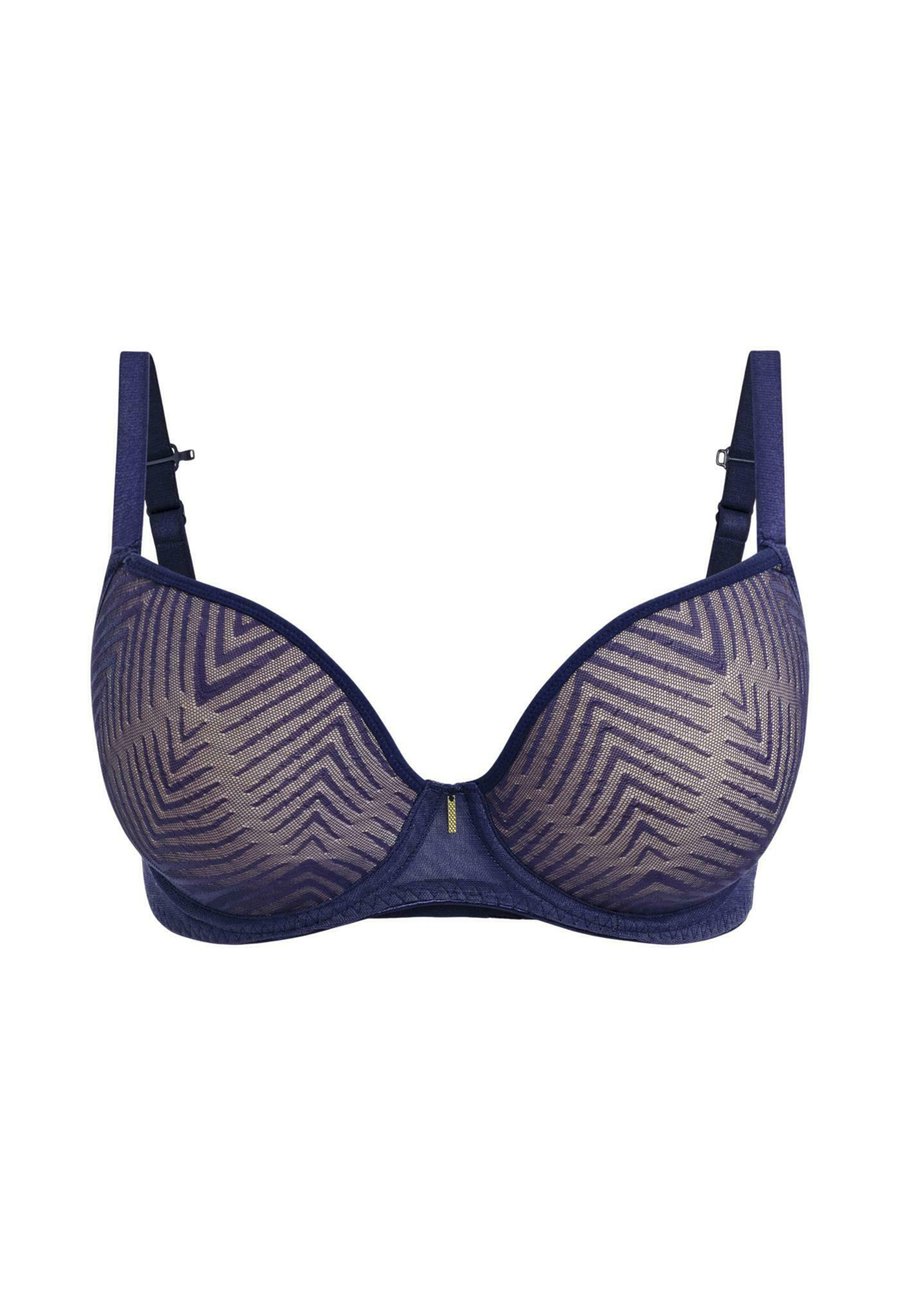Бюстгальтер Tailored отличается современным дизайном благодаря геометрической сетчатой кружевной накладке, которая сочетается с тональным или контрастным основанием. Бюстгальтер Underwire Plunge T-Shirt Bra имеет формованные чашки для создания гладкого, округлого силуэта. Низкий центральный вырез спереди обеспечивает желаемое декольте без выпирания. Эластичная геометрическая кружевная накладка имеет плоскую поверхность, благодаря чему бюстгальтер не виден под одеждой. Фиксированные полностью регулируемые бретели предотвращают соскальзывание, а застежка-крючок позволяет носить бюстгальтер в стиле борцовка. Декоративная планка по центру спереди. Детали: Бюстгальтер на косточках, регулируемые бретели.Материал и уход