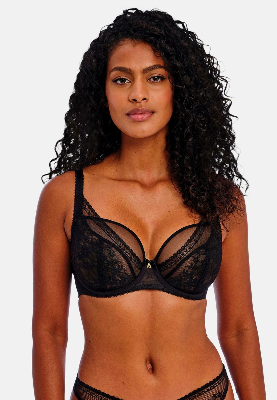 Бюстгальтер Sydnie выполнен из красивого и нежного эластичного кружева с цветочным узором. Он имеет лестный низкий вырез спереди и кружевную внешнюю чашку, создающую высокий силуэт и придающую объем. Каркас с глубоким вырезом выполнен из жесткой полупрозрачной сетки для более легкого вида без потери поддержки. Фиксированные полностью регулируемые бретели предотвращают соскальзывание. Деталь в виде бантика и цветка по центру спереди. Детали: Бюстгальтер на косточках, прозрачный.Материал и уход