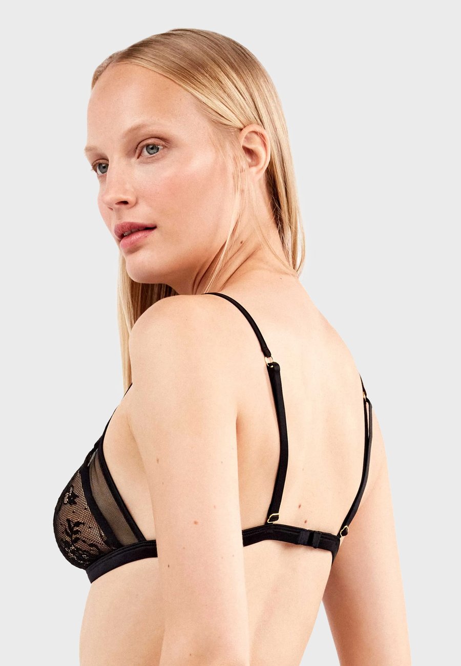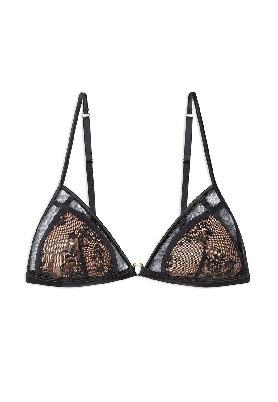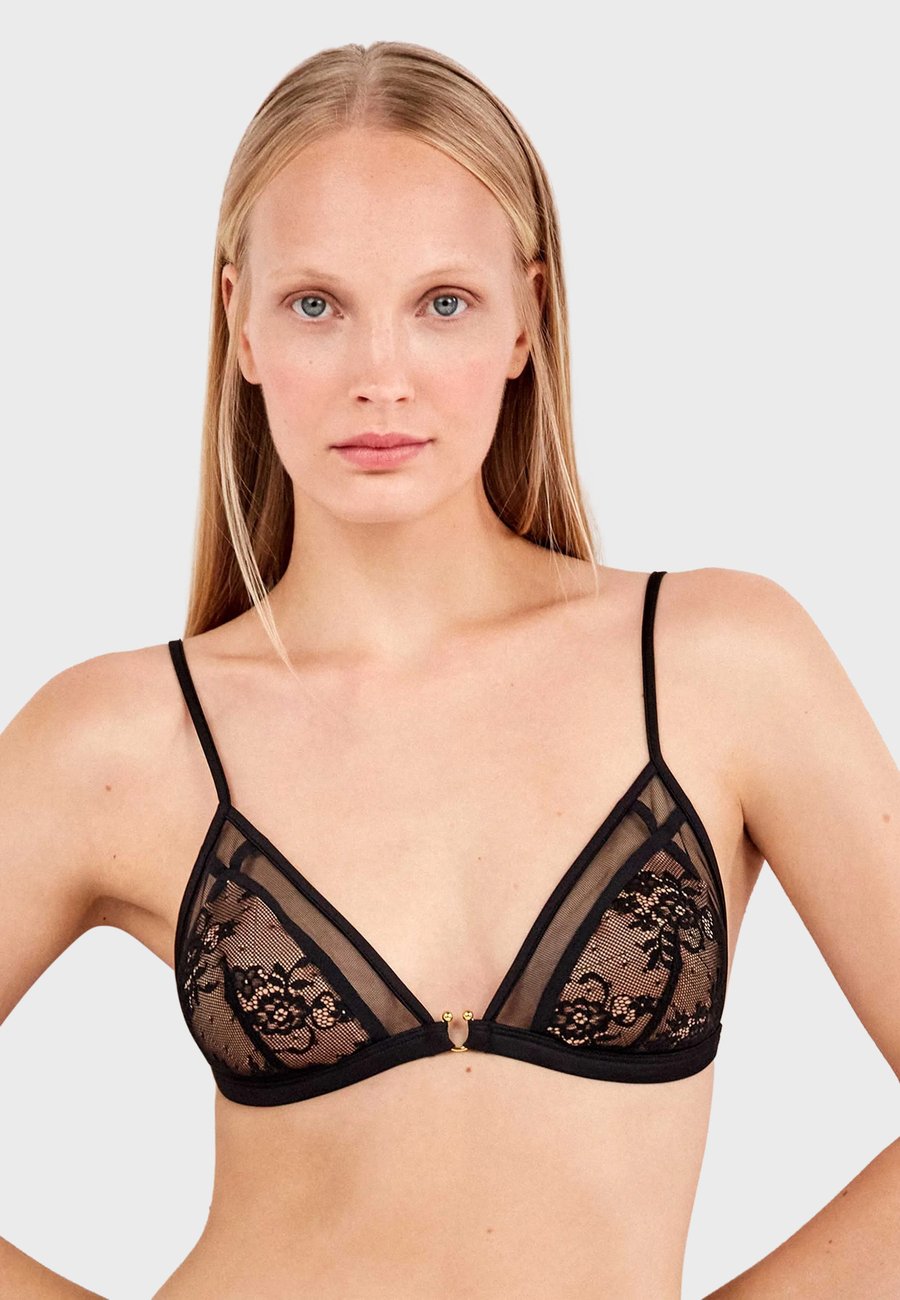 Этот треугольный бюстгальтер сочетает в себе элегантность и комфорт благодаря съемным чашечкам и подкладке телесного цвета, создающей естественный вид. Детали из тюля идеально гармонируют с прозрачным кружевом с цветочным узором, а изысканная металлическая деталь по центру добавляет современный и утонченный штрих. Изящный дизайн, сочетающий в себе соблазнительность и легкость, идеально подходит для повседневной носки или особых случаев.О товареБюстгальтер без косточекДетали: Бюстгальтер без косточек, съемные подушечки, бюстгальтер с подкладкой, прозрачныйМатериал и уход