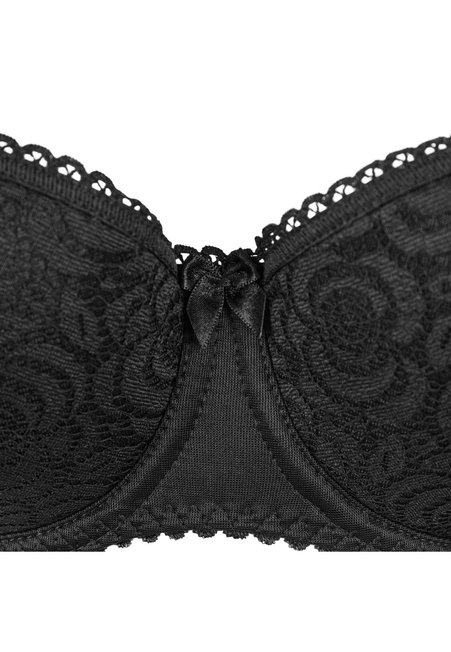 Этот бюстгальтер с балконетным вырезом на косточках имеет более широкие бретели, которые приподнимают грудь снизу чашки, создавая эффект увеличения объема. Форма мягких чашек обеспечивает идеальную поддержку и надежно фиксирует грудь. ПРЕИМУЩЕСТВА И ОСОБЕННОСТИ • Бюстгальтер с балконетным вырезом • Удобная посадка • Чашечки с подкладкой из хлопка • На косточках • Мягкие бретели • Регулируемые бретели • Атласный бант Детали: Бюстгальтер на косточкахМатериал и уход