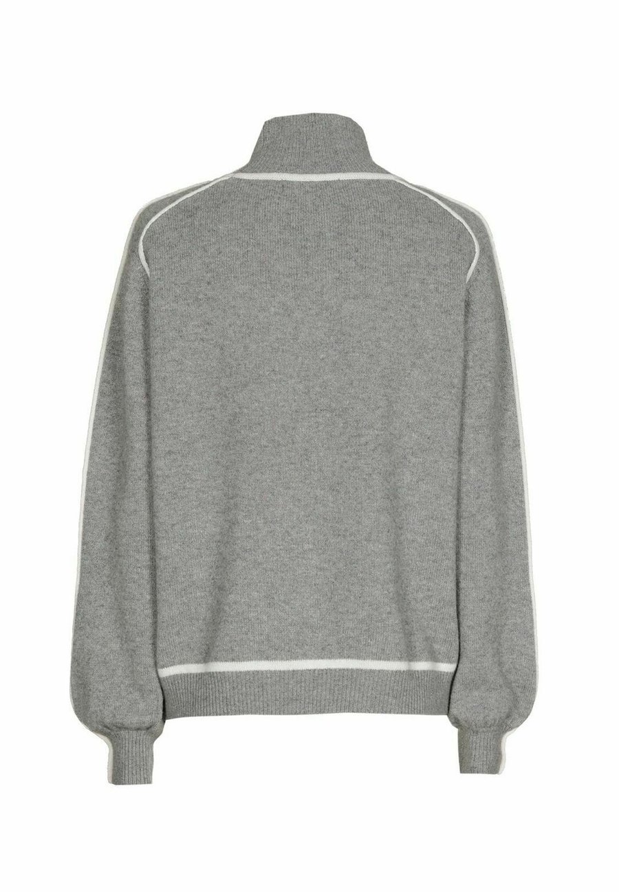Свитер из роскошной смеси шерсти и кашемира, созданный для максимального тепла и комфорта. Эта модель имеет воротник-стойку и выполнена в сером цвете с едва заметными контрастными линиями цвета экрю, что придает ей изысканный и современный вид. Невероятно мягкий и приятный на ощупь - идеально подходит для прохладных дней, когда вы хотите сочетать стиль и уют. - Шерсть и кашемир - Длинные рукава - Воротник-стойка - Контрастные линии цвета экрю Воротник: Воротник-стойкаМатериал и уход
