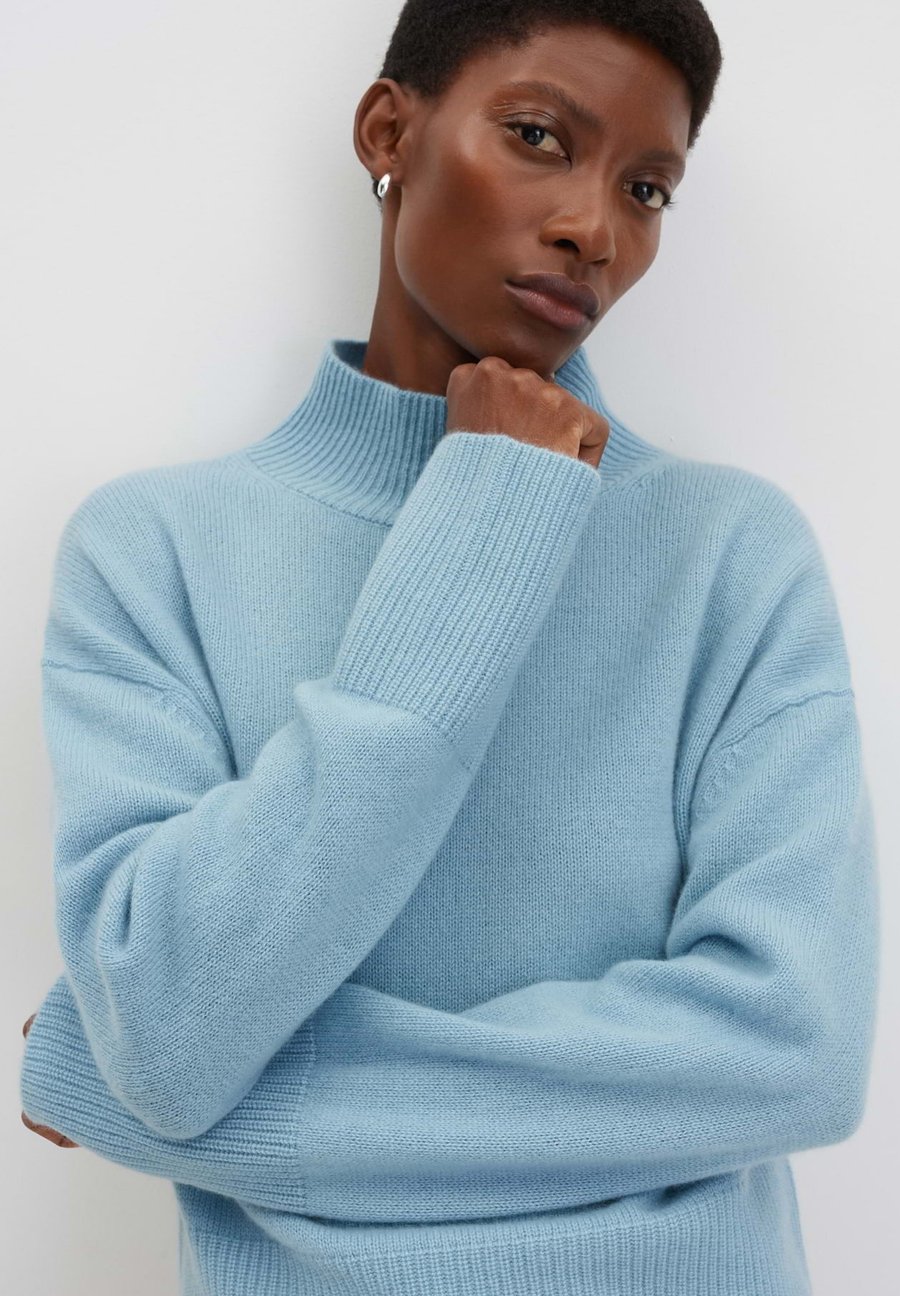 100% кашемирМягкий, легкий и теплый. Кашемир - это сверхтонкая козья шерсть, которая в три раза лучше сохраняет тепло, чем овечья, и становится мягче с каждой ноской. Материал верха: 100% кашемир.Размер и посадка