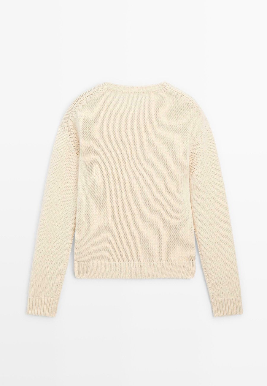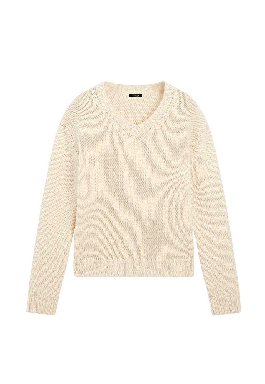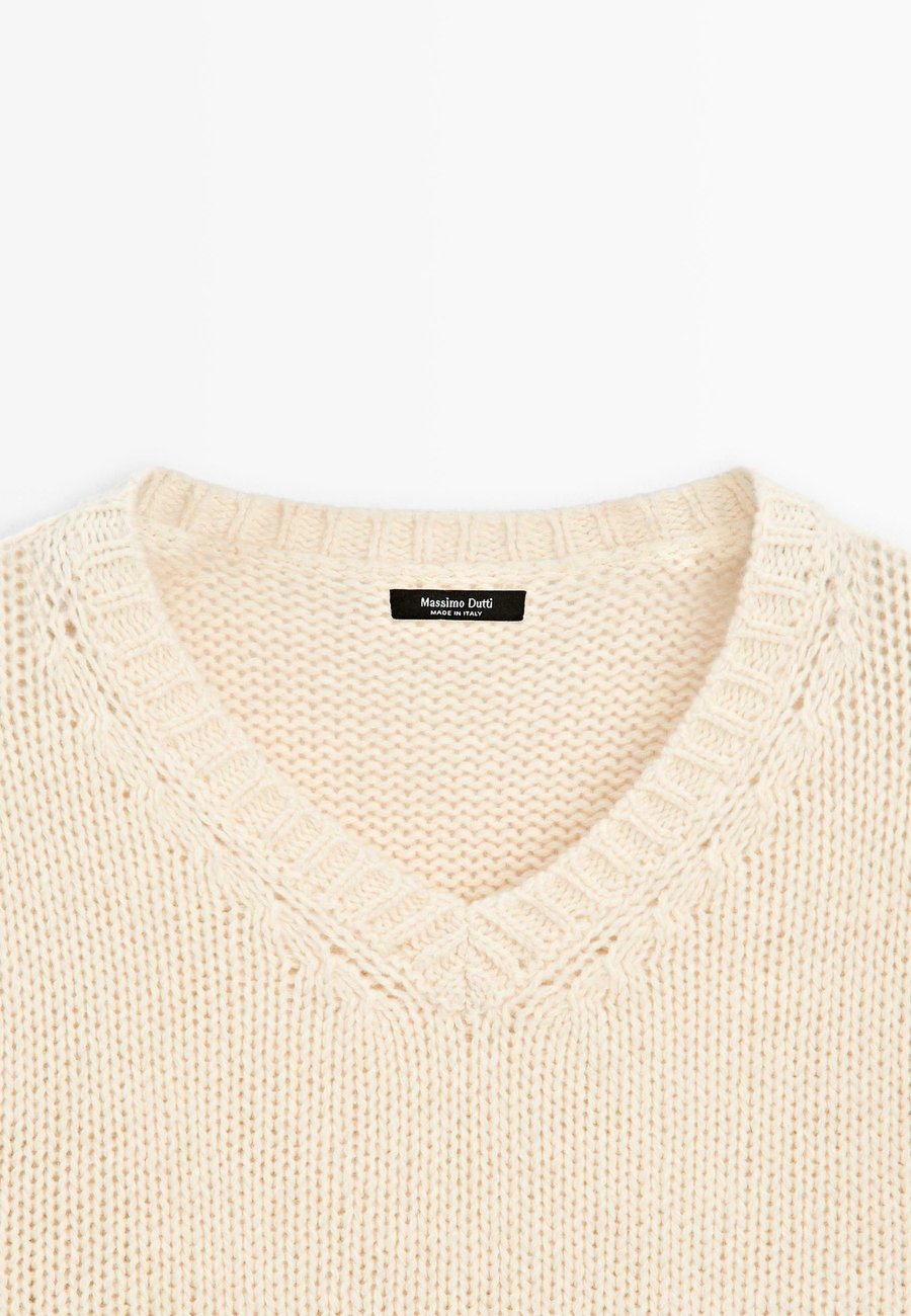 V-образный вырез. Ребристая отделка. Длинные рукава. Спущенные плечи. Вязаный свитер из 100% шерсти. Вырез: V-образный.Материал и уход