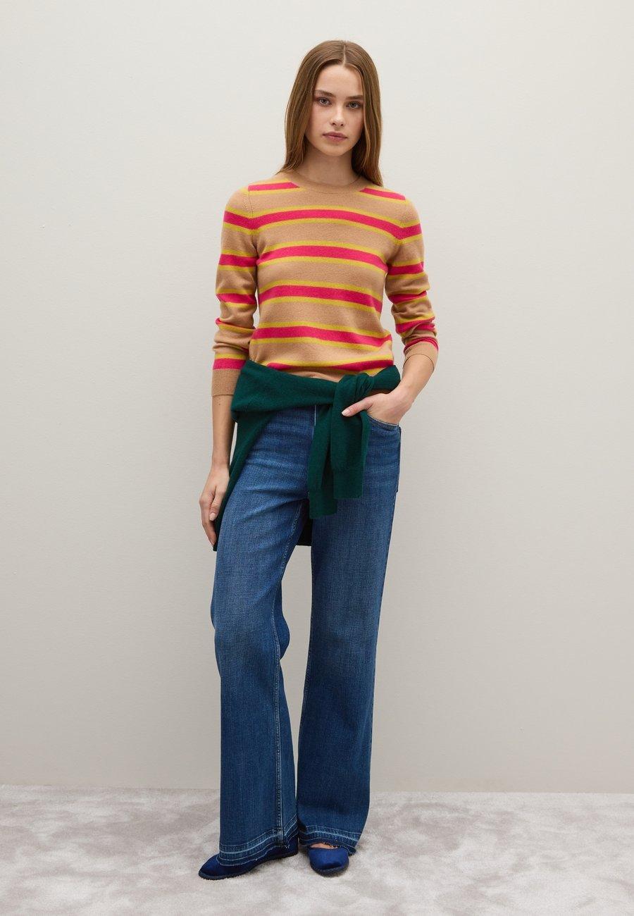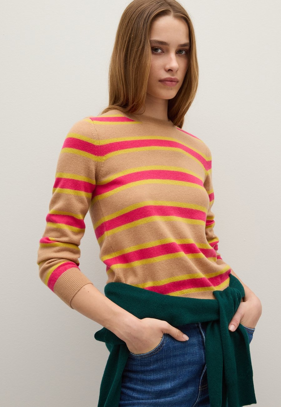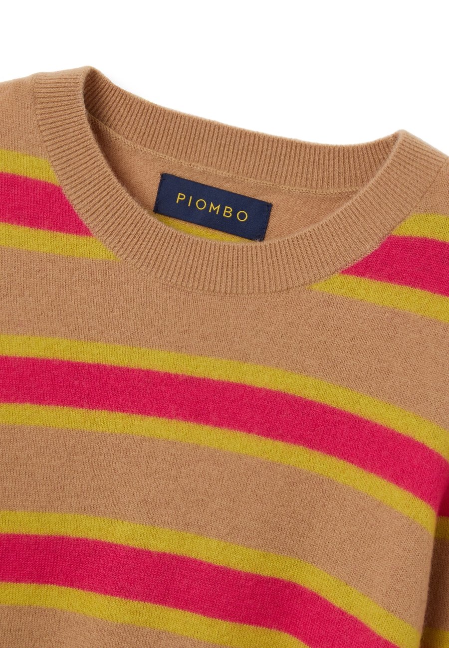 Розовый и бежевый полосатый свитер из чистой шерсти от линии PIOMBO идеально подходит для зимнего сезона. Теплые полосы придают изделию энергию, а классический дизайн с круглым вырезом и длинными рукавами обеспечивает комфорт. Идеально подходит для повседневного образа, выделяется мягкостью трикотажной вязки. Яркое дополнение к вашему гардеробу. Вырез: КруглыйМатериал и уход