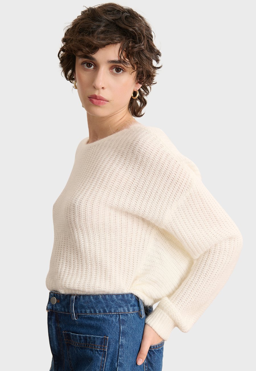 Свитер с длинными рукавами, широким воротником и открытой спиной, украшенный изящным бантом. Женственное и элегантное платье, идеально подходящее для дополнения повседневных образов. Вырез: Открытая спинаМатериал и уход