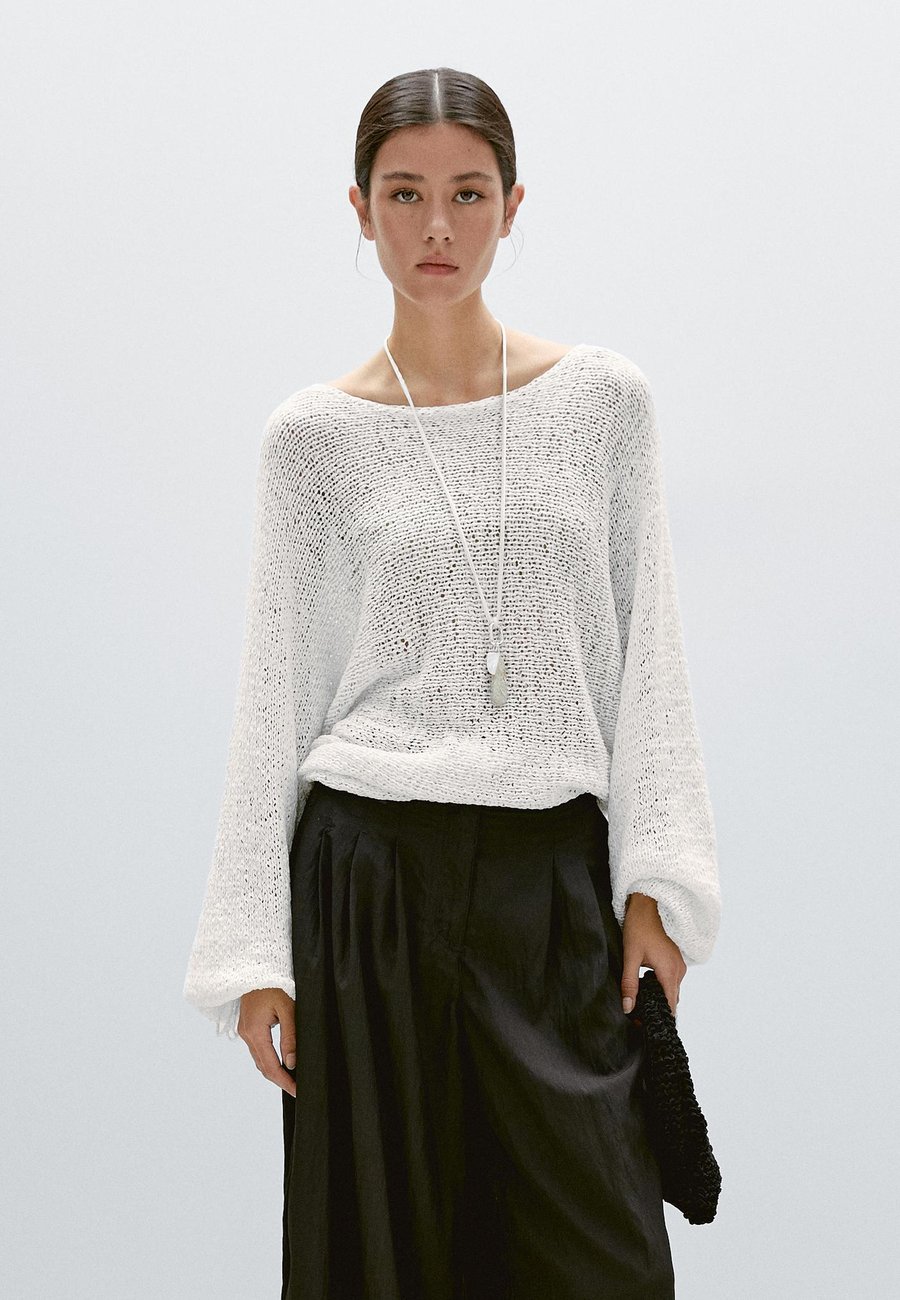 Широкий и свободный силуэт, не приталенный. В наличии аналогичная модель. Вырез-лодочка. Регулируемые рукава со шнурками. Вырез горловины: ЛодочкаМатериал и уход