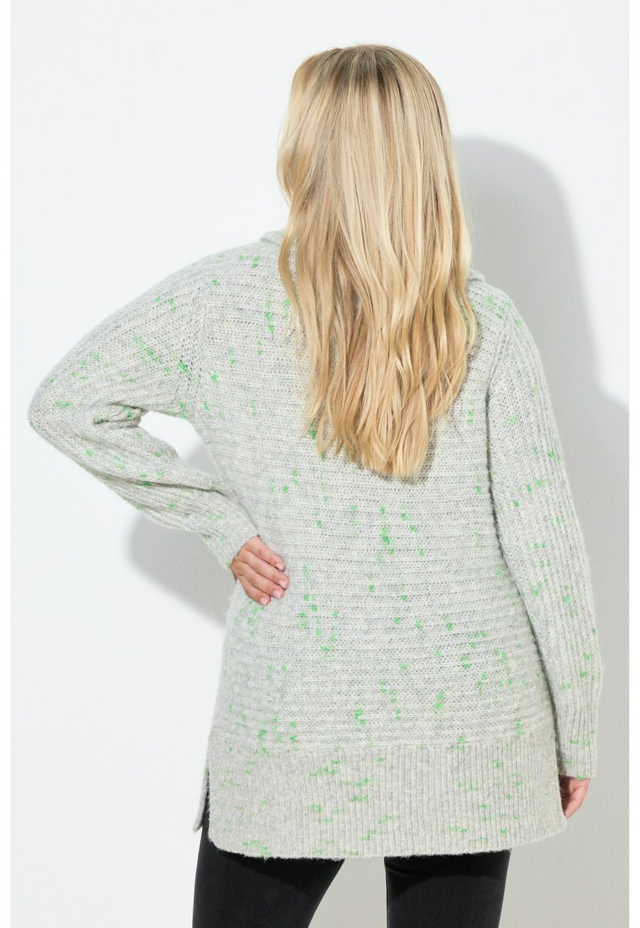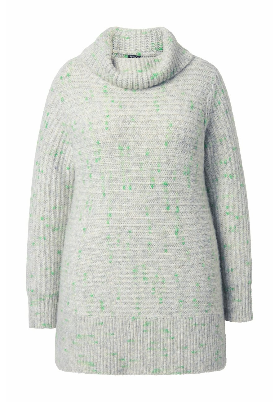 Свитер с высоким воротником из космической пряжи. Модный эффект окрашивания космической пряжей придает современный вид этому фактурному ребристому вязаному изделию. Широкий воротник-стойка. Длинные рукава. Широкий ребристый нижний край. Боковые разрезы для комфорта. Свободный крой. Инструкции по уходу: Машинная стирка, не сушить в сушилке, не гладить. Воротник: Воротник-полоМатериал и уход