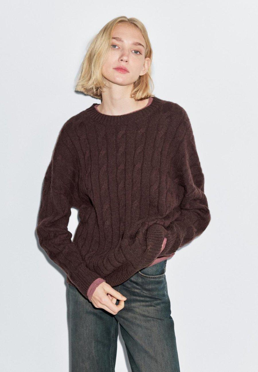 Джемпер Massimo Dutti CABLE-KNIT SWEATER, Bordeaux