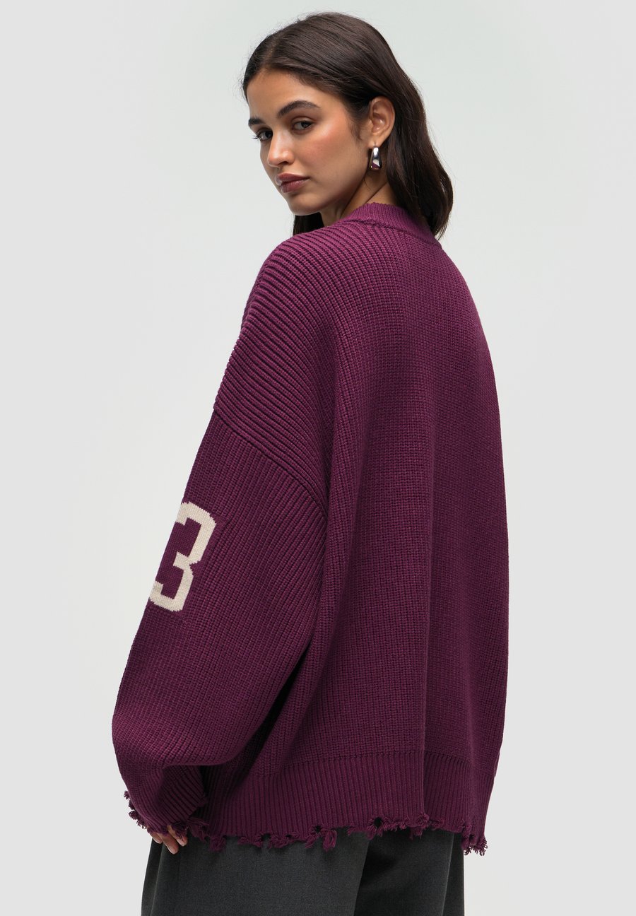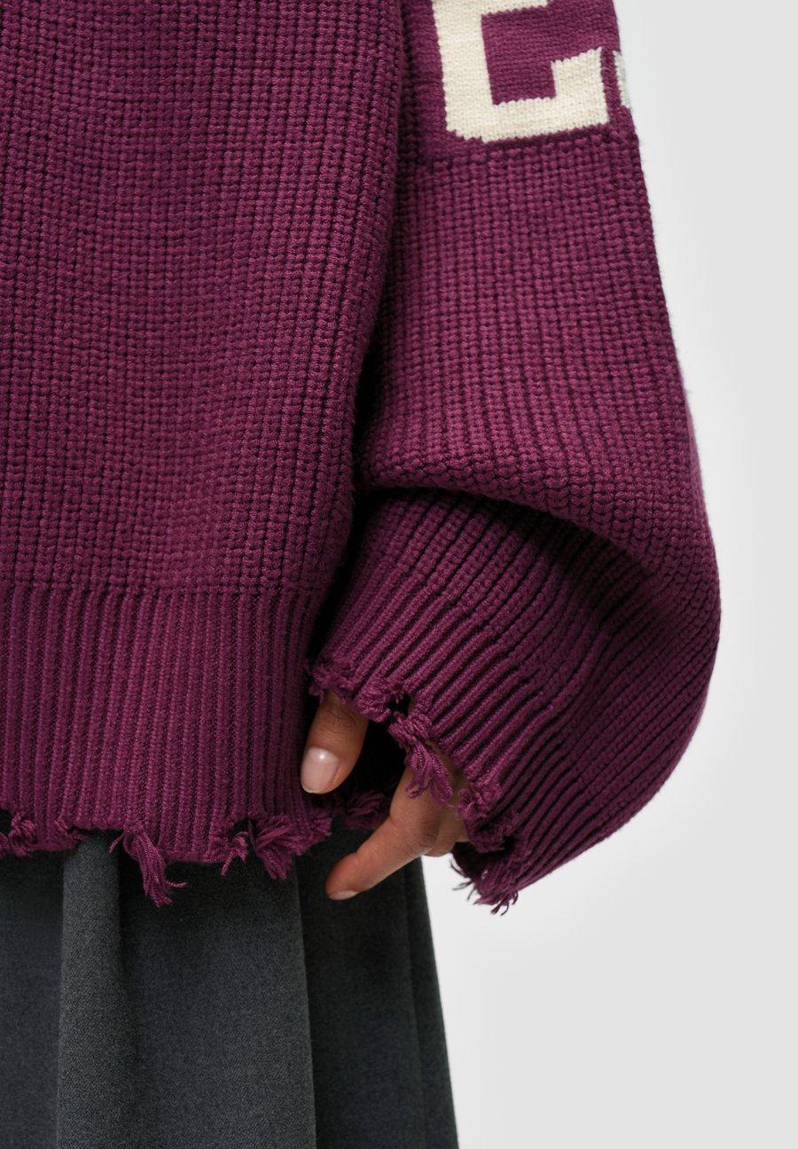 Вязаный логотип из жаккардовой вязки с эффектом потертости. Вырез горловины: круглый.Материал и уход