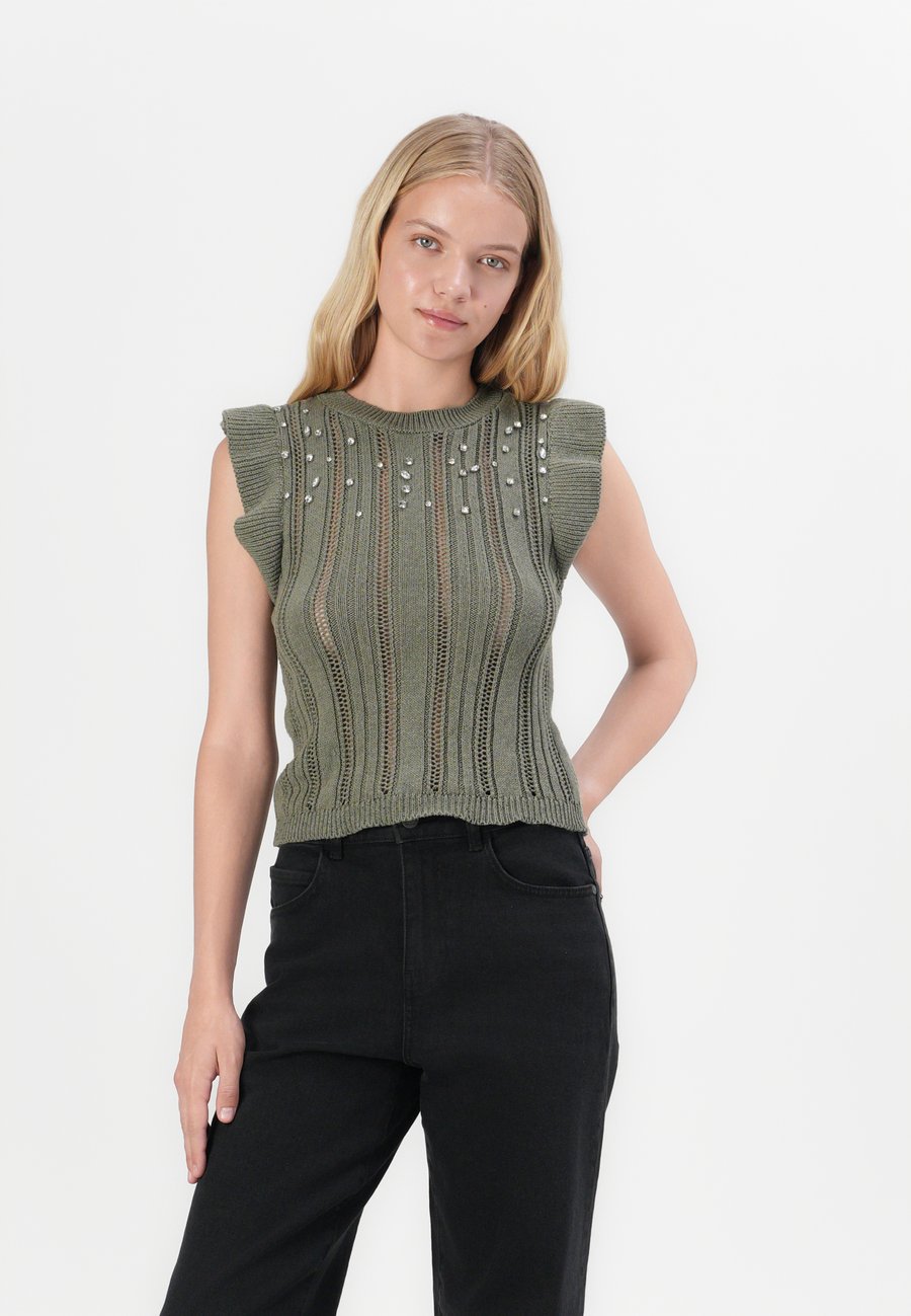 Джемпер ONLY ONLNEWTULLE LIFE FRILL BLING, Kalamata/Off-White