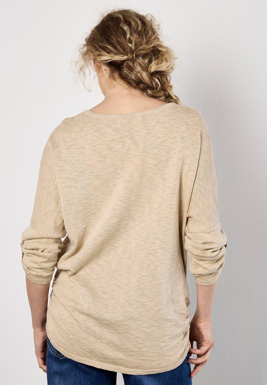 Этот легкий трикотажный крой с вырезом-лодочкой и закатанными рукавами отличается свободным силуэтом, приспущенными плечевыми швами и сборками по бокам, что создает привлекательный силуэт. Вырез: КруглыйМатериал и уход