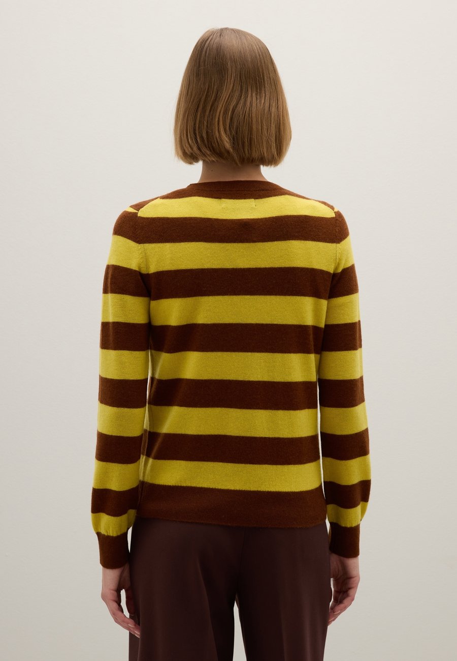 Многоцветный свитер из чистой шерсти из линии PIOMBO выполнен в многоцветном дизайне с горизонтальными коричневыми и желтыми полосами. Круглый вырез и длинные рукава обеспечивают комфорт и тепло в холодные дни. Стандартный крой делает его идеальным для любого случая. Вырез горловины: КруглыйМатериал и уход
