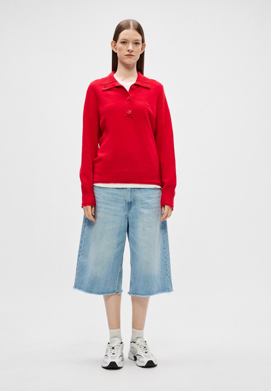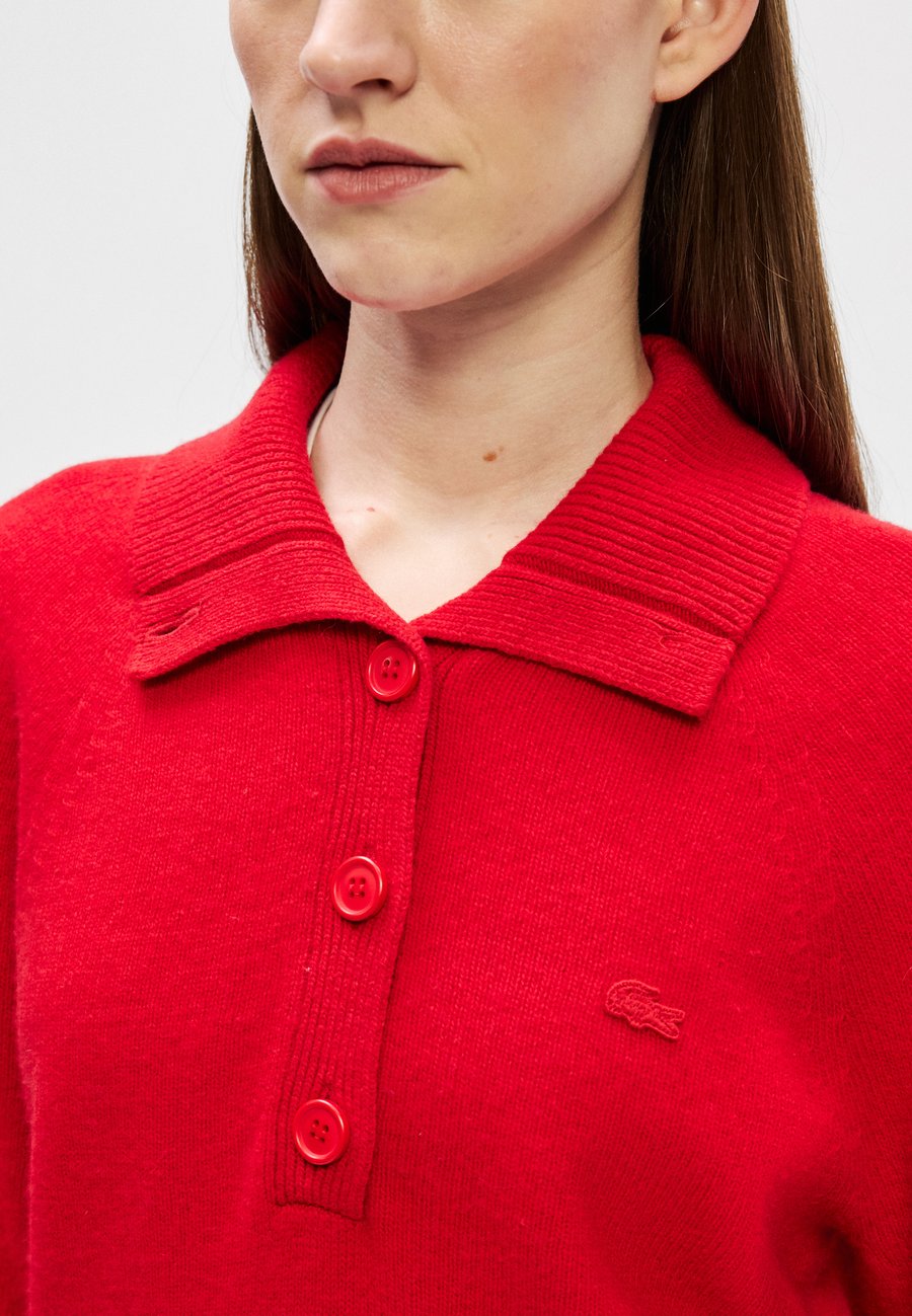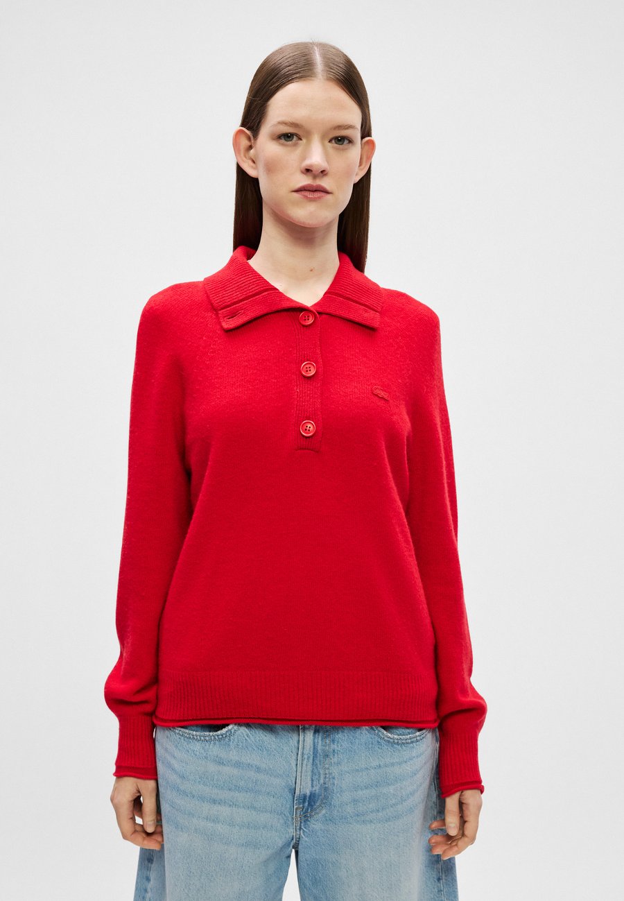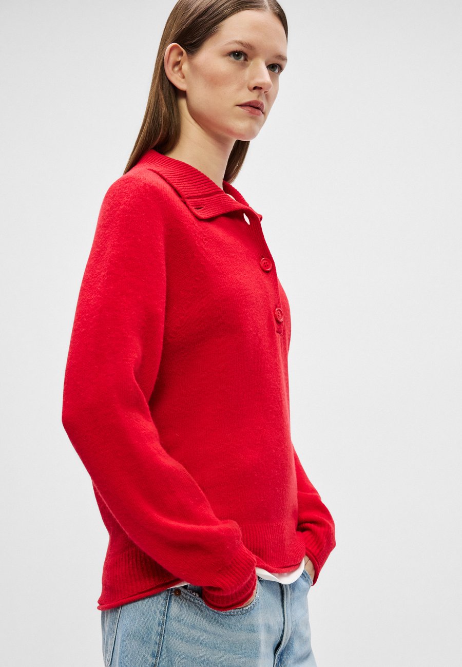 Элегантный свитер из чесаной шерсти с 3D-вязкой, высоким воротником на пуговицах и подвернутыми деталями для создания женственного силуэта. Вырез: КруглыйМатериал и уход
