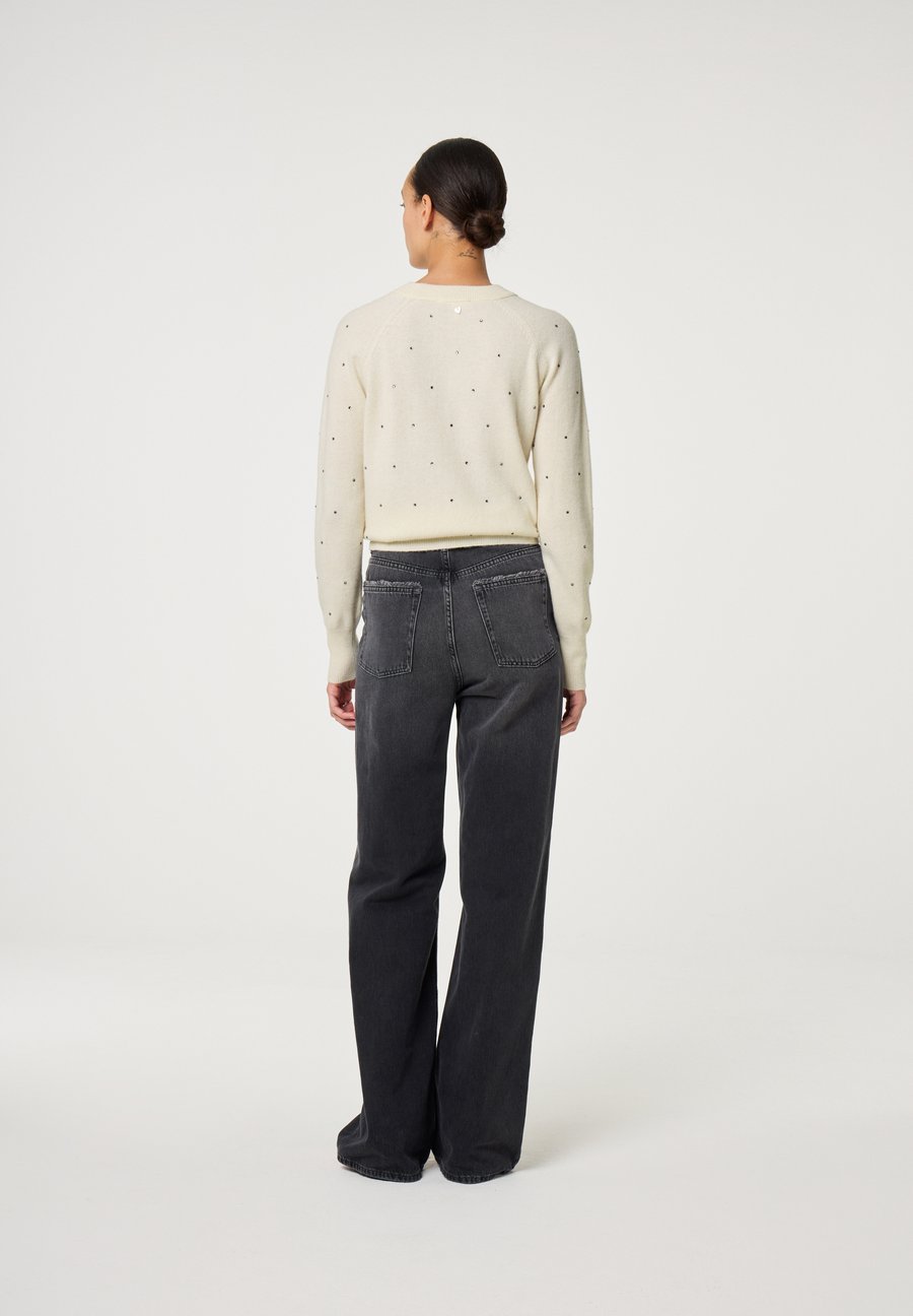 Этот свободный кремовый пуловер изготовлен из мягкой ткани и украшен стразами на груди для легкого блеска. Благодаря свободному силуэту, она обеспечивает комфорт без ущерба для стиля, идеально подходит для повседневных шикарных образов. Вырез: Круглый вырезМатериал и уход