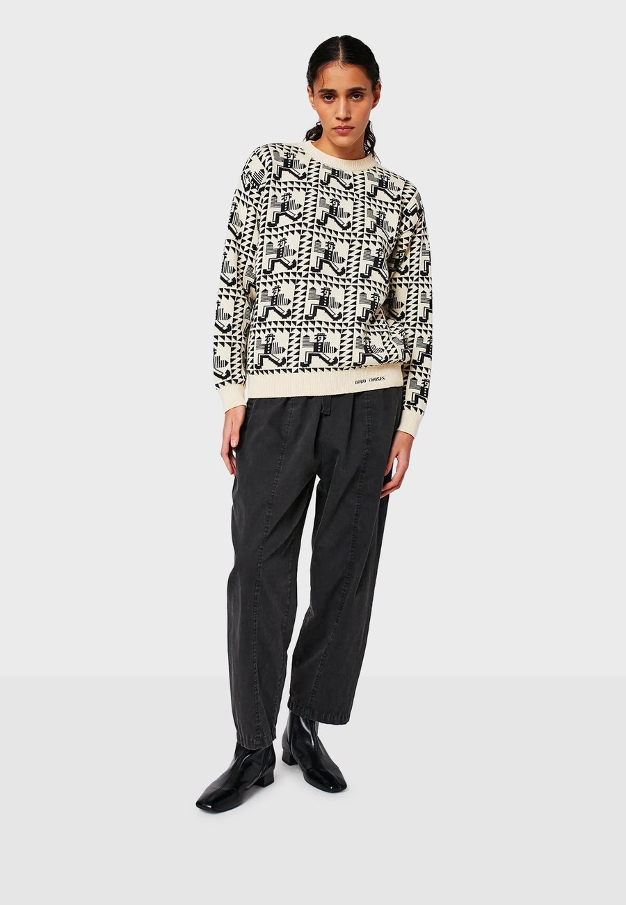Свитер с длинными рукавами, круглым вырезом и приспущенными плечами. Тщательно продуманный крой обеспечивает естественную свободу движений и элегантный вид. Каждая деталь тщательно продумана, чтобы обеспечить гармоничный и удобный силуэт. Идеально подходит для тех, кто ищет комфорт и сдержанную элегантность. Вырез горловины: круглыйМатериал и уход