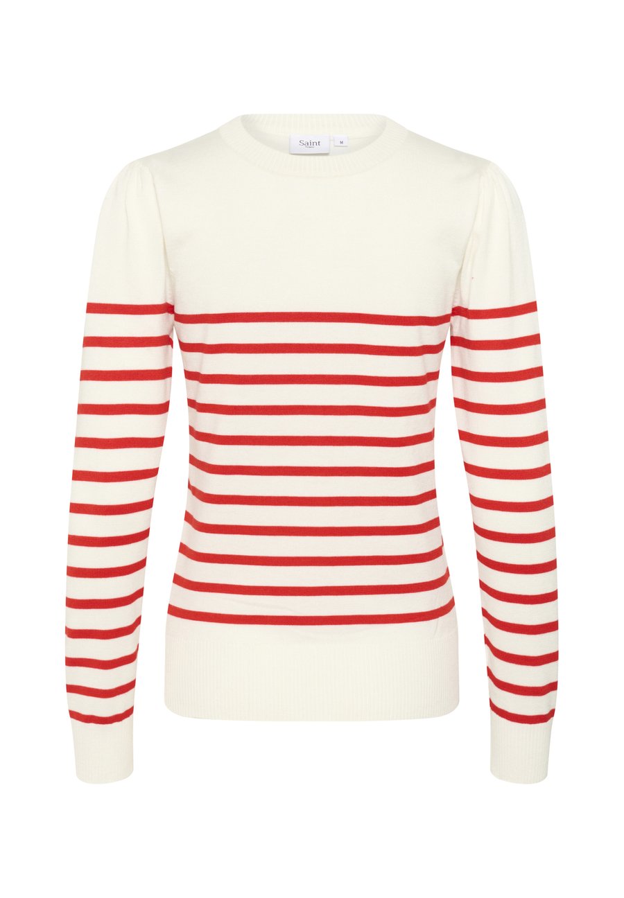 Джемпер Saint Tropez LS STRIPED, Ice And F Scarlet Stripe/Beige
