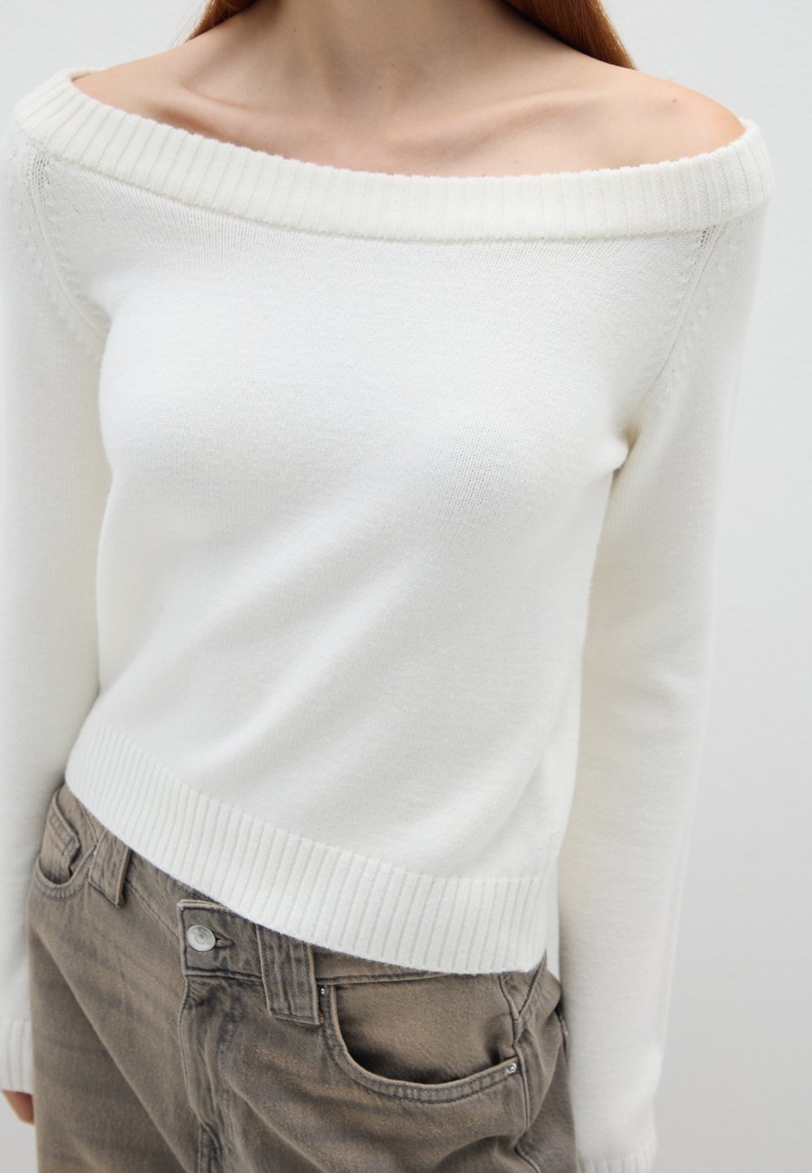 Белый джемпер из коллекции B.Angel - незаменимая вещь для каждой женщины. Он имеет облегающий крой и классический дизайн с вырезом-лодочкой. Длинные рукава и трикотажная ткань обеспечивают комфорт и тепло в прохладные осенне-зимние дни. Универсальная вещь, подходящая для множества сочетаний, идеально подходит для любого случая. Вырез горловины: ЛодочкаМатериал и уход