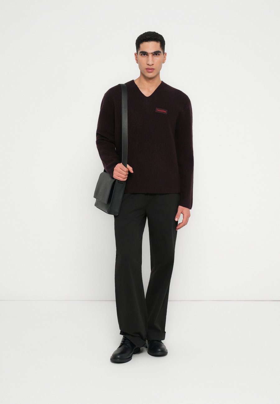 Небольшая этикетка-флажок на уровне груди. Вырез горловины: V-образный.Материал и уход