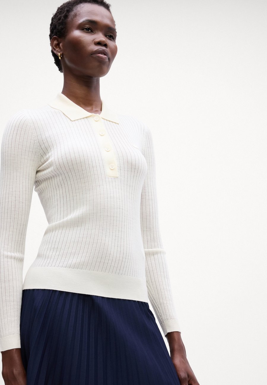Этот свитер, изготовленный из трикотажа из мериносовой шерсти, сочетает в себе тепло и элегантность благодаря бесшовной трехмерной конструкции. Неподвластная времени классика. Воротник: рубашка полоМатериал и уход