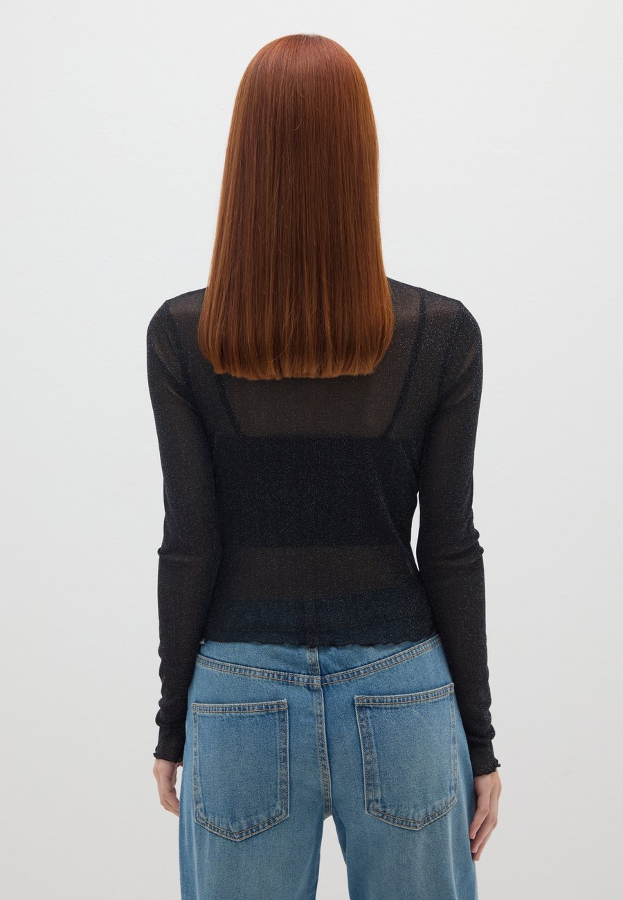 Черный джемпер с длинными рукавами из линии B.Angel - незаменимый элемент вашего гардероба. Трикотажная сетка придает изделию современную и изысканную текстуру, идеально подходящую для создания осенне-зимних образов. Этот джемпер обеспечит комфорт и стиль на любой случай, идеально подходящий для тех, кто ищет универсальную одежду, способную адаптироваться к различным ситуациям. Воротник: Воротник-стойкаМатериал и уход