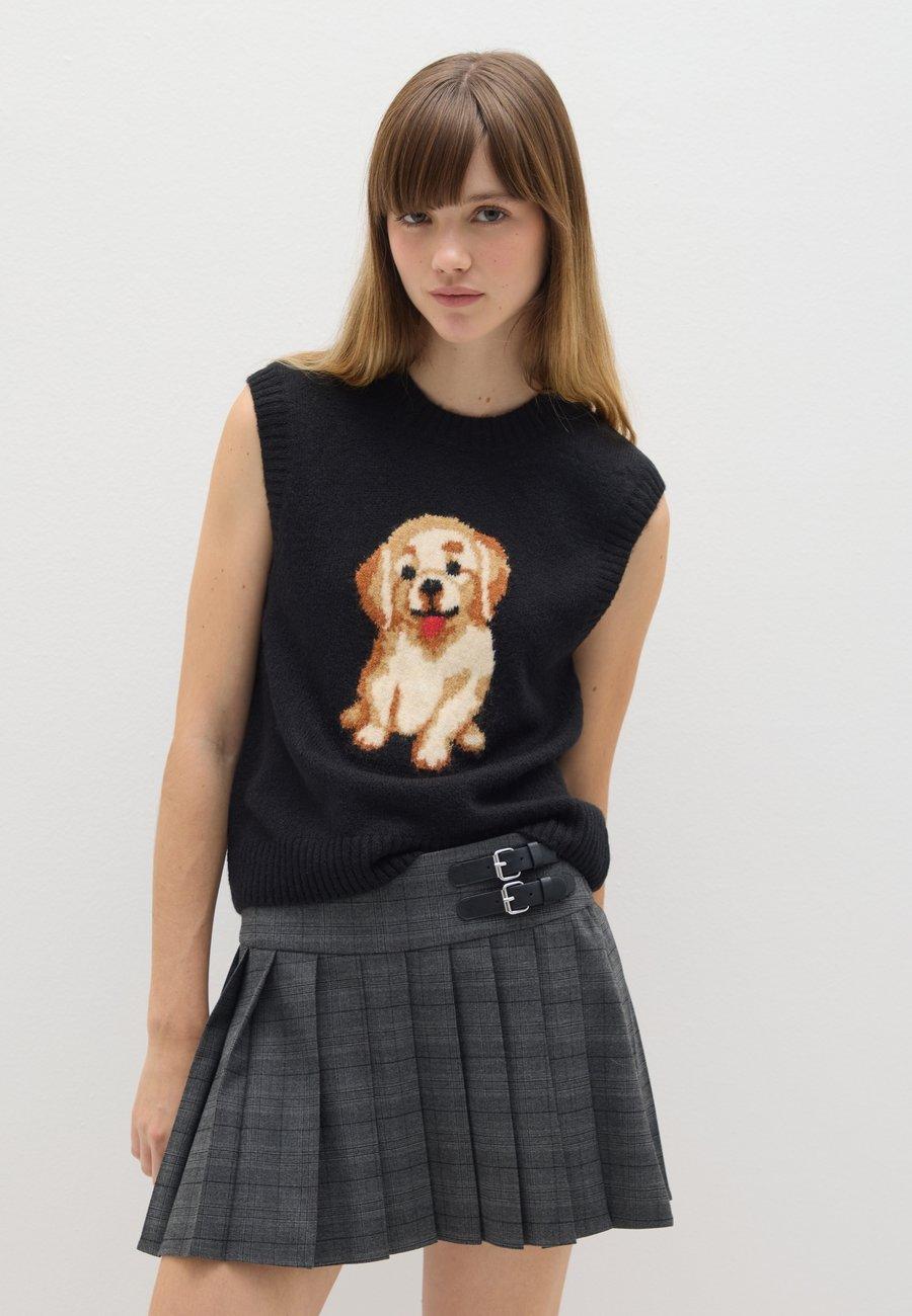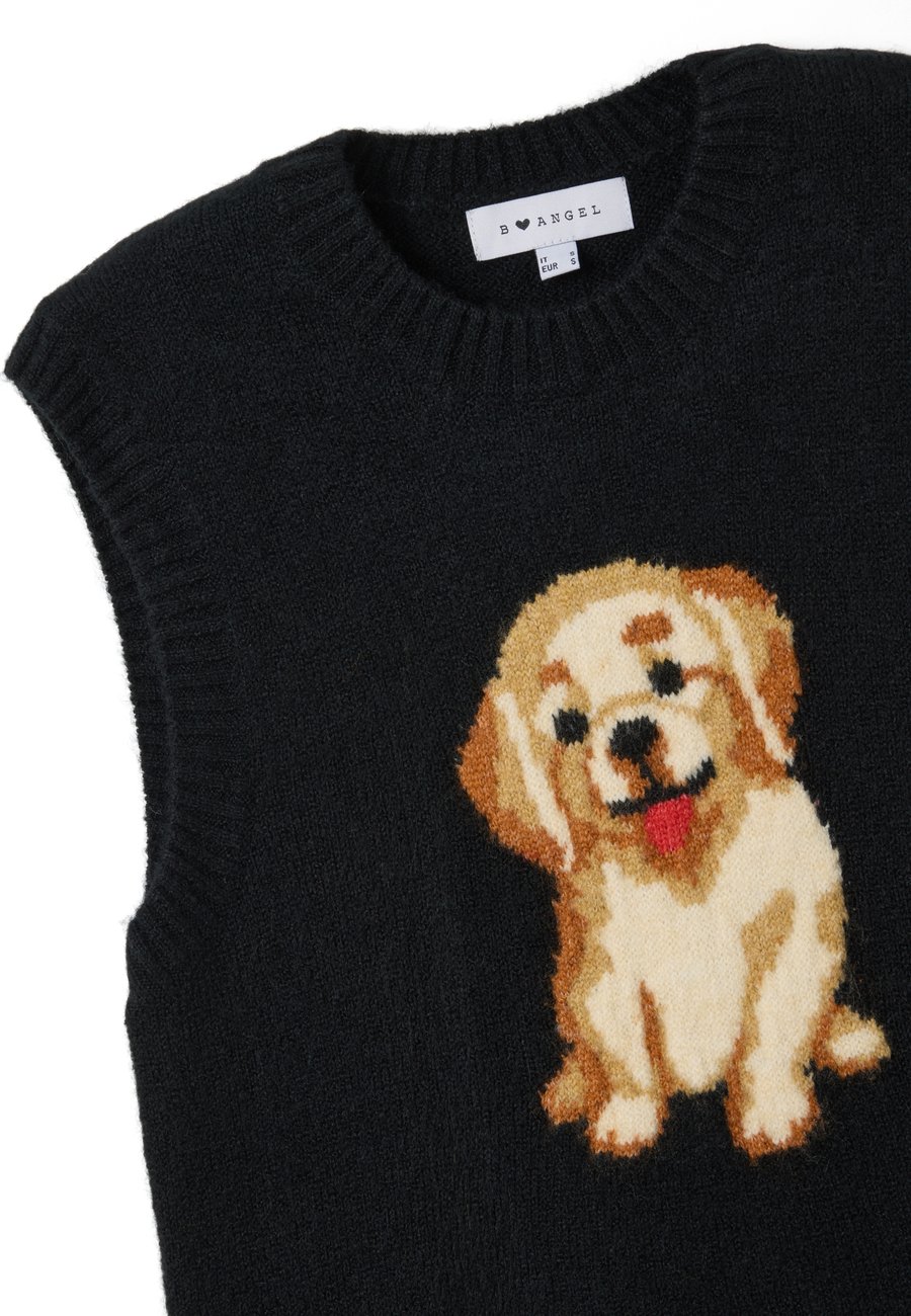 Черный жилет из коллекции B.Angel - это универсальная и удобная вещь. Принт с изображением собак добавит изюминку вашему гардеробу. Благодаря стандартному крою и круглому вырезу горловины, он идеально подходит для ношения поверх рубашек или джемперов. Идеально сочетается с джинсами или повседневными брюками для создания расслабленного и модного образа. Вырез горловины: круглыйМатериал и уход