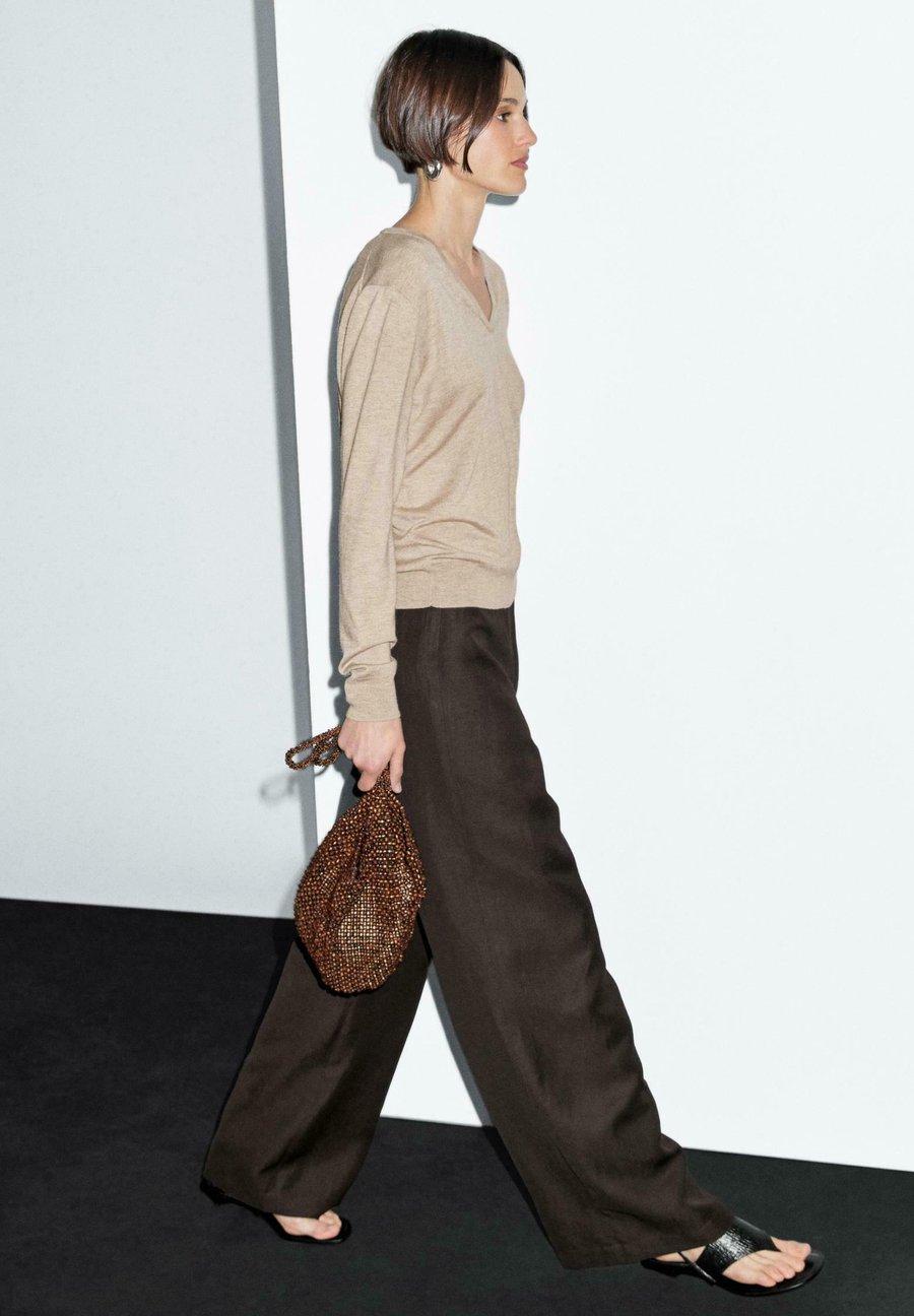 Свитер из шерстяной смеси. V-образный вырез. Ребристая отделка. Длинные рукава. Вырез горловины: глубокий V-образный. Манжеты рукавов: ребристые. Узор: меланж. Материал и уход: 42% шерсть, 30% вискоза, 28% полиамид. Ткань: трикотаж. Содержит нетекстильные части животного происхождения: нет. Инструкции по уходу: не сушить в сушильной машине. Размер и посадка: рост модели 179 см, размер S. Посадка: стандартная. Форма: прямая. Длина: стандартная. Длина рукава: длинная. Длина рукава: 59 см (размер XS). Общая длина: 58 см. (Размер XS)Доставка товаров осуществляется курьером или на пункт выдачи заказов.
