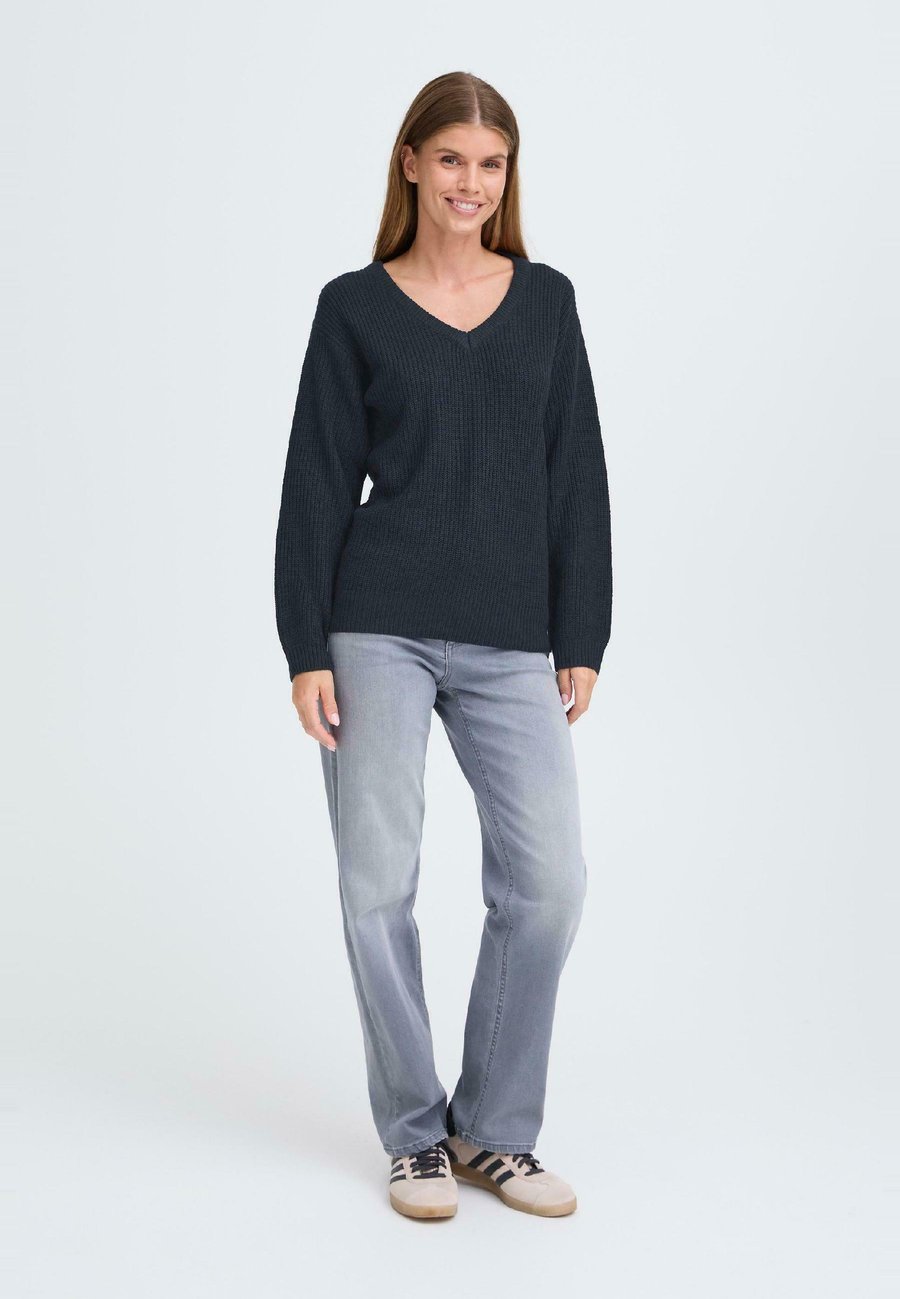 Вязаный свитер OXIRMA от OXMO привнесет уют в вашу повседневную жизнь. Классический крой и мягкий трикотажный материал обеспечивают комфорт при ношении, а простой дизайн легко сочетается с джинсами, юбками или брюками - настоящая любимая вещь на каждый день. Вырез горловины: V-образныйМатериал и уход