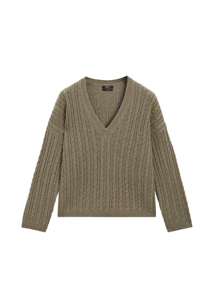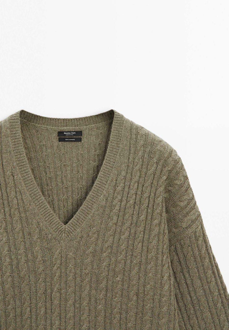 V-образный вырез. Ребристая отделка. Свободный крой. Длинные рукава. Вязаный свитер из 100% кашемира. Детали с плетением. Вырез: Низкий V-образный вырез.Материал и уход