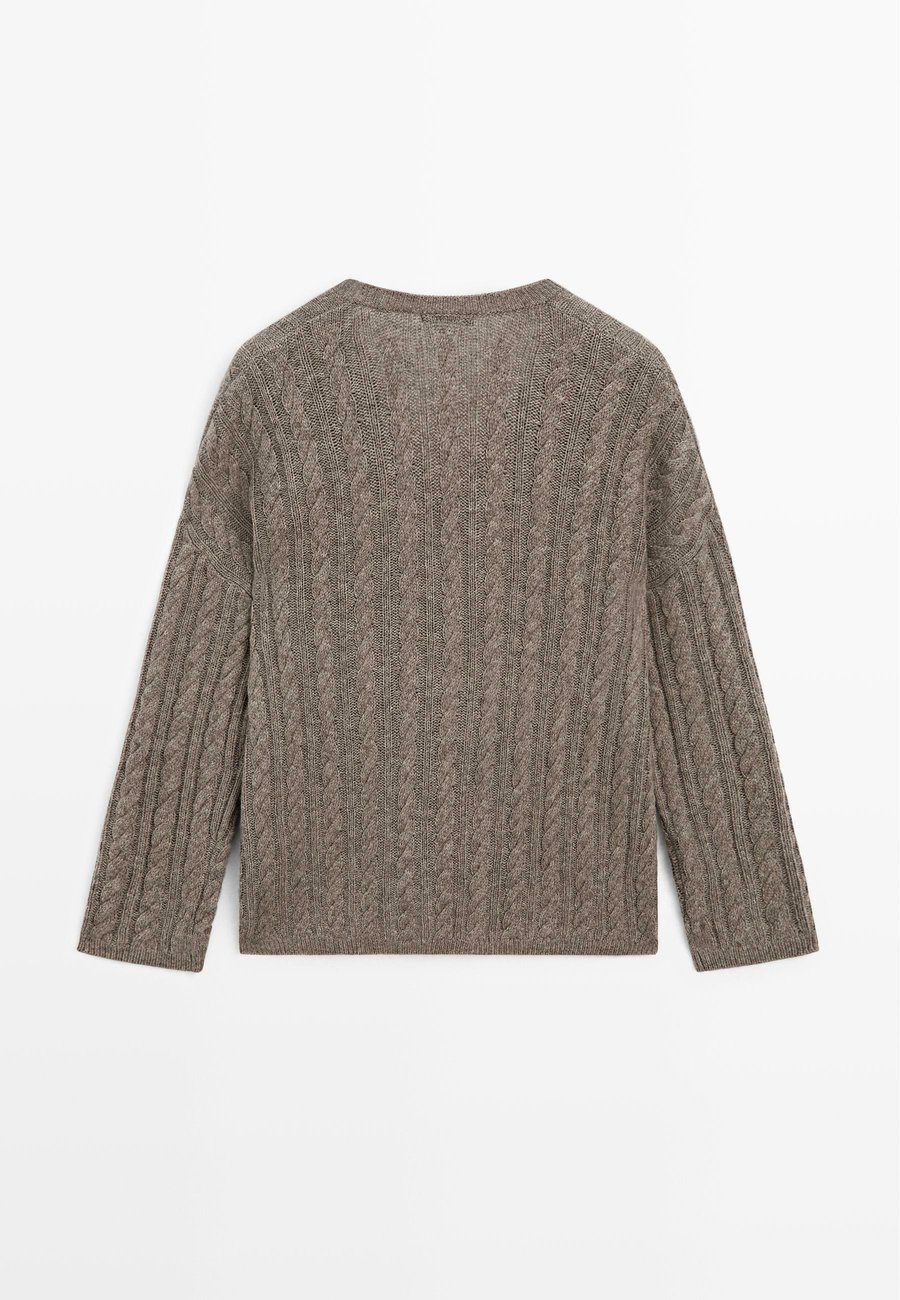 V-образный вырез. Ребристая отделка. Длинные рукава. Вязаный свитер из смесовой шерстяной ткани. Детали с плетением. Вырез горловины: V-образныйМатериал и уход