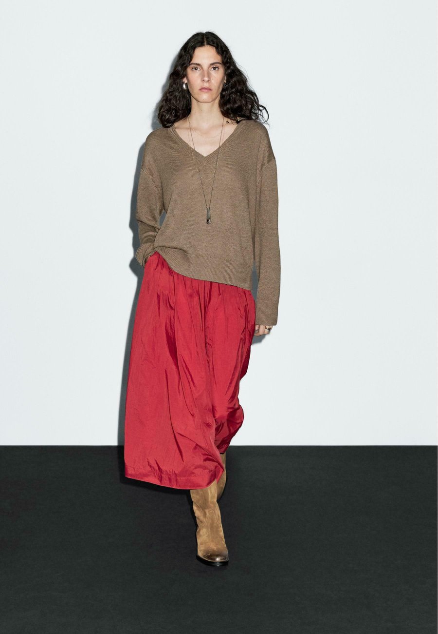V-образный вырез. Свитер из смесовой льняной ткани. Ребристая отделка. Длинные рукава. Тонкая, легкая ткань. Вырез: V-образныйМатериал и уход